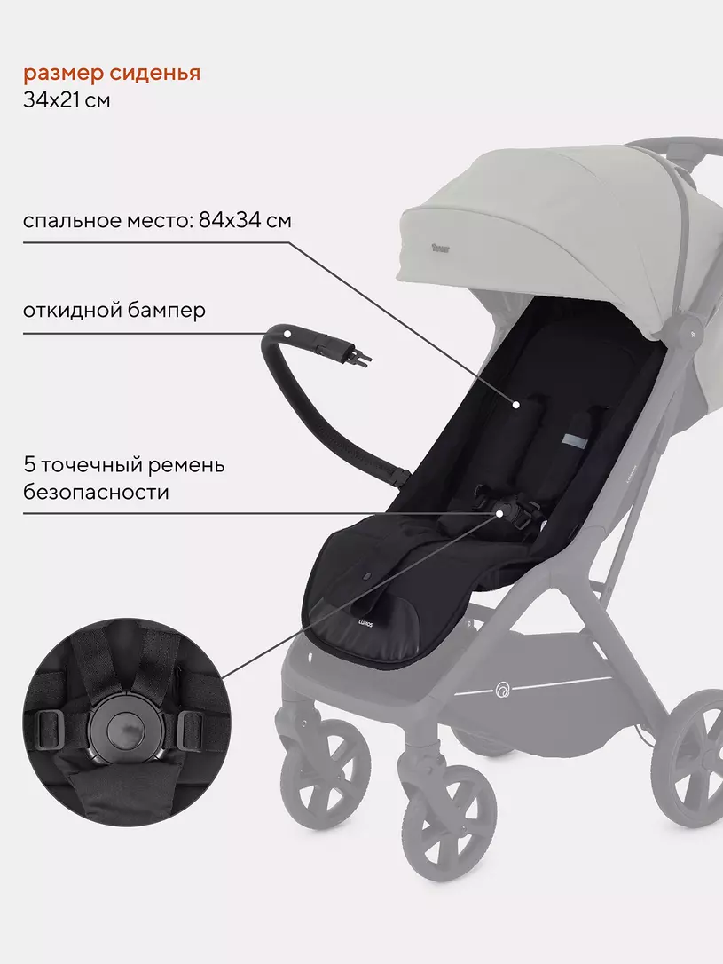 - надежный регулируемый 5-точечный ремень обеспечит крохе дополнительную безопасность