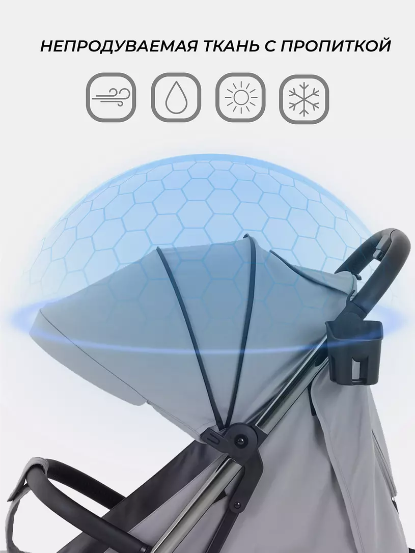 - регулируемый капюшон со скрытой секцией полностью укроет ребенка от солнца, осадков и ветра