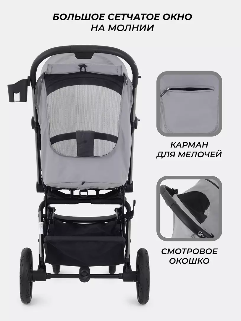 - для знойных дней изголовье коляски дополнено большим вентиляционным окном на молнии