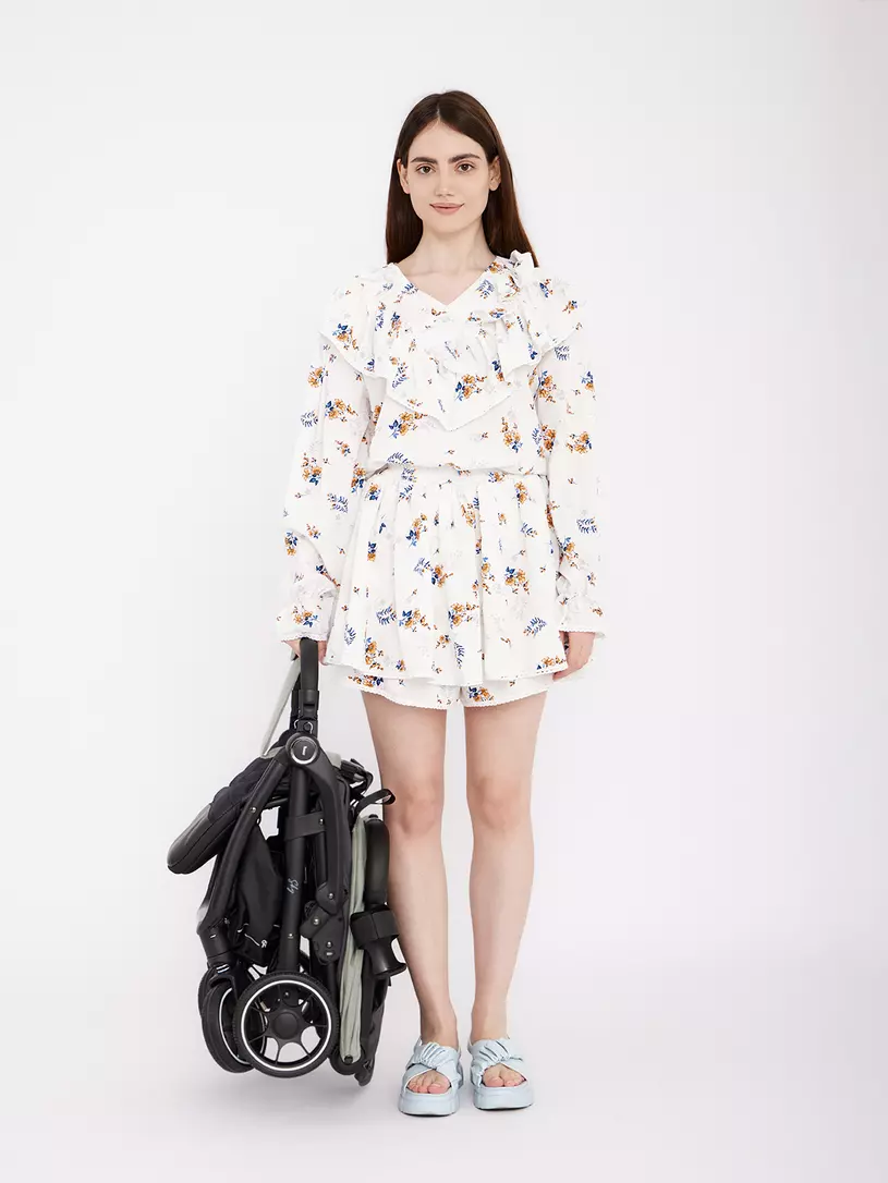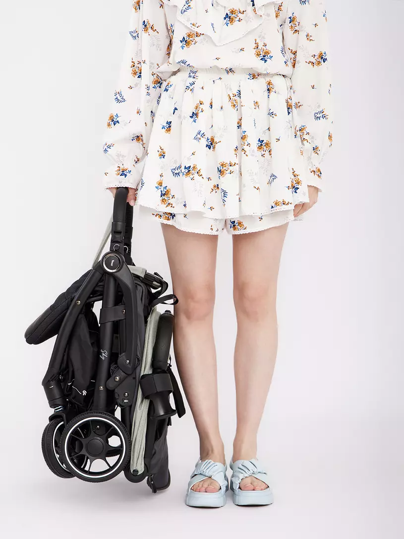 - сверхманевренность коляске дарят плавающие (на 360°) передние колеса