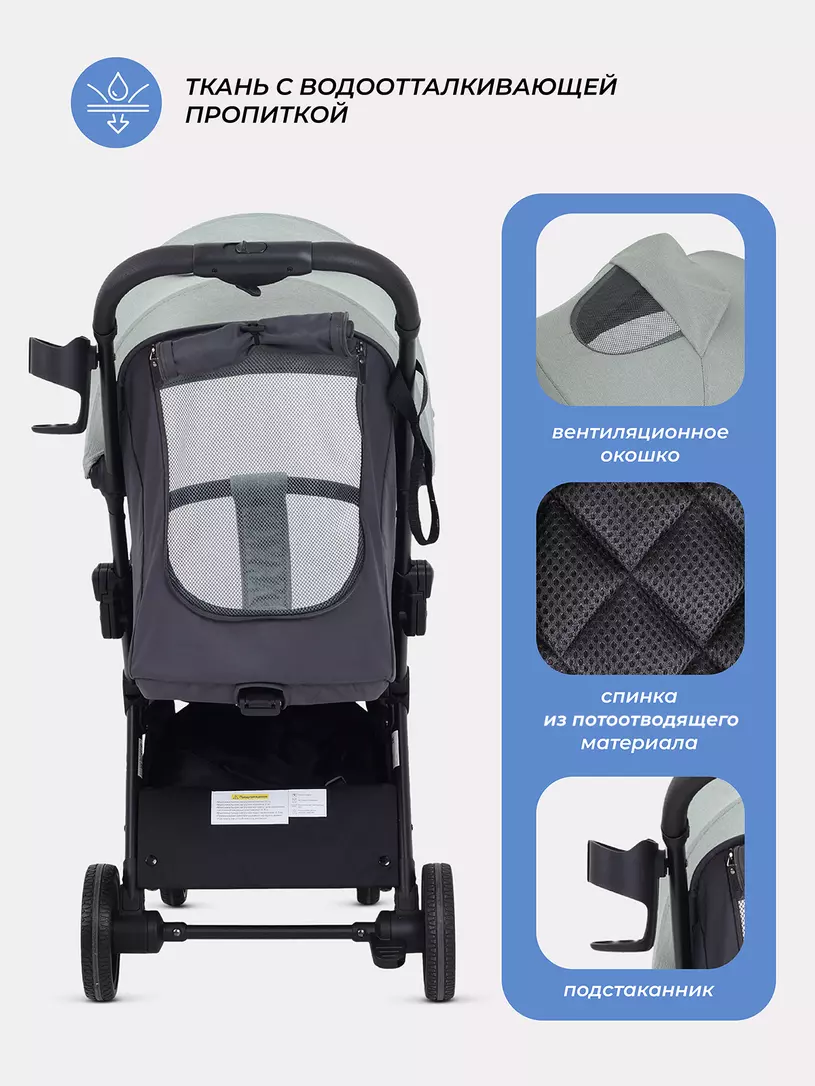 - для знойных дней изголовье коляски дополнено большим вентиляционным окном на молнии