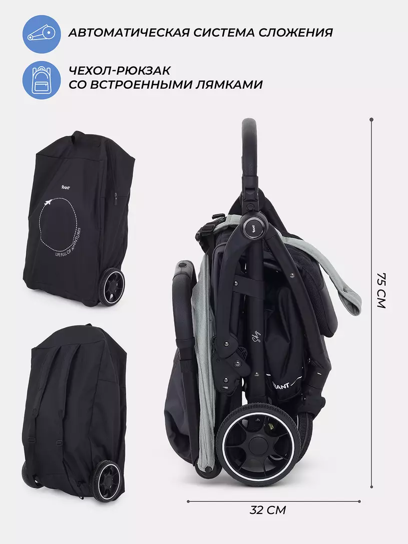- в комплектации объемный чехол с встроенными лямками, чтобы удобно переносить сложенную коляску как рюкзак