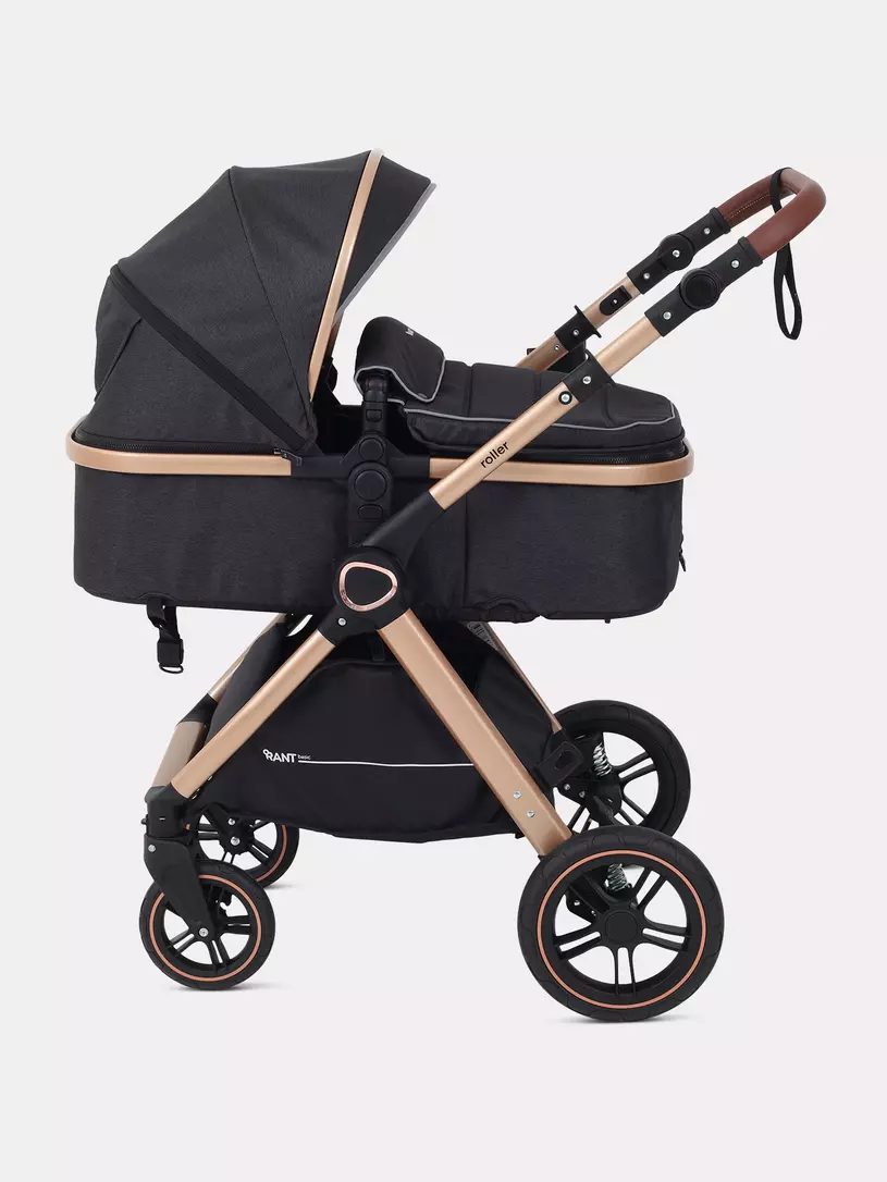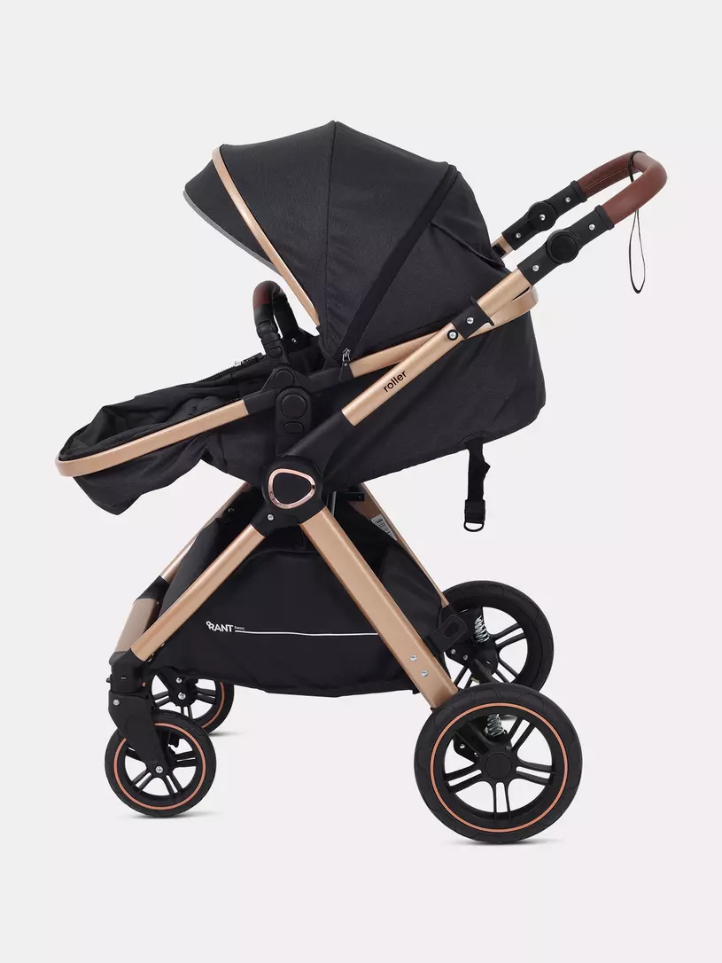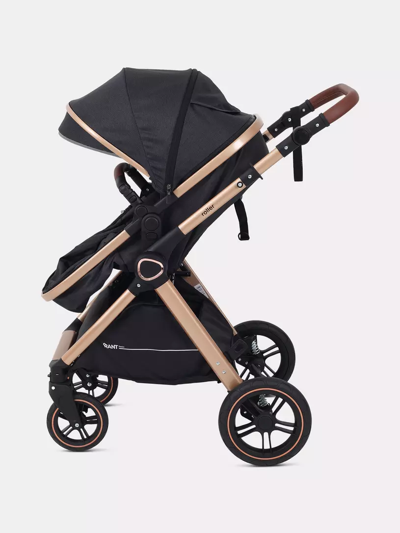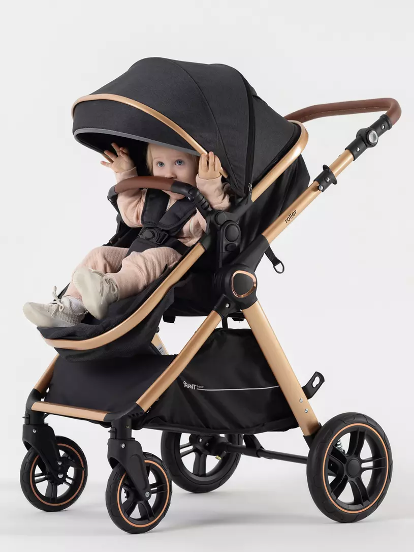 Детская коляска-трансформер RANT BASIC ROLLER GOLD 2024 - эргономичная и легкая! Особенности модели: трансформация в два движения; перекидная и регулируемая по высоте ручка; реверсивный блок; подстаканник для любимых напитков; тормоз-"качелька", не пачкающий обувь; эффектный внешний вид.