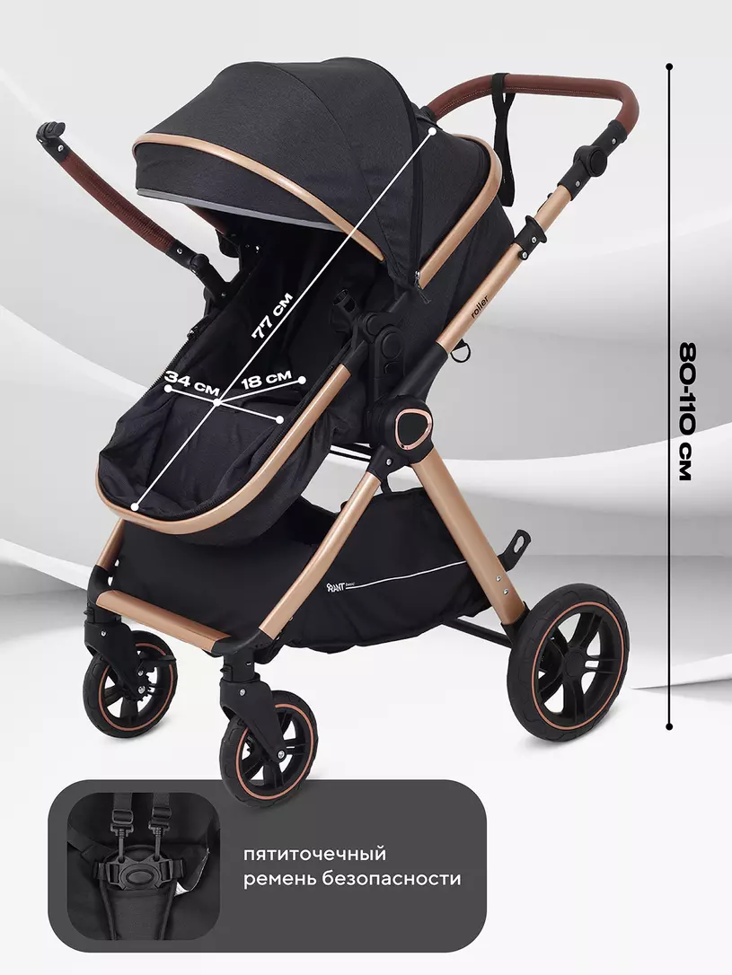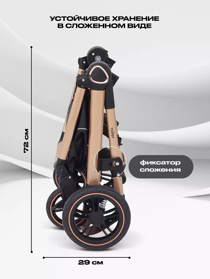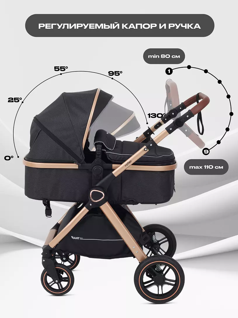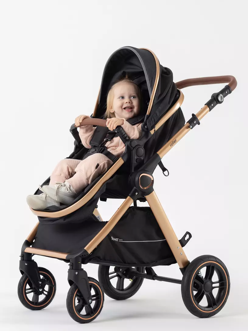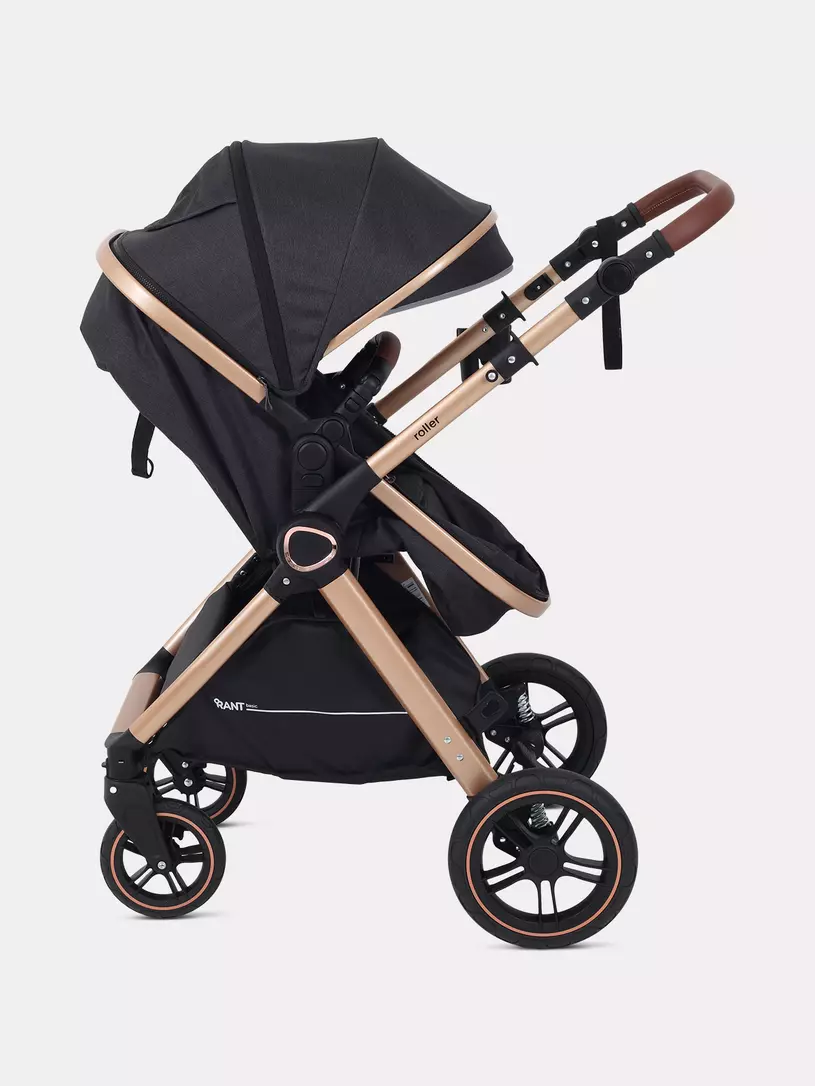 Детская коляска-трансформер RANT BASIC ROLLER GOLD 2024 - эргономичная и легкая! Особенности модели: трансформация в два движения; перекидная и регулируемая по высоте ручка; реверсивный блок; подстаканник для любимых напитков; тормоз-"качелька", не пачкающий обувь; эффектный внешний вид.