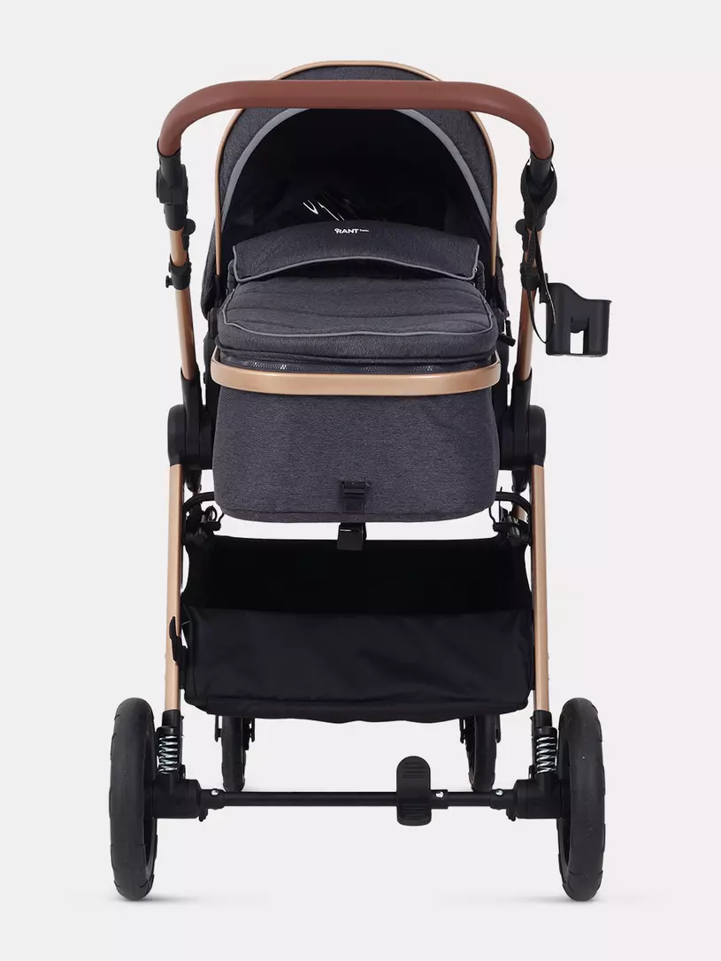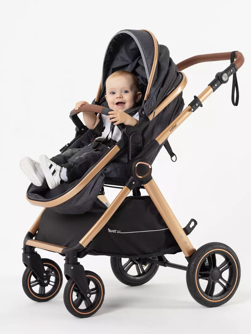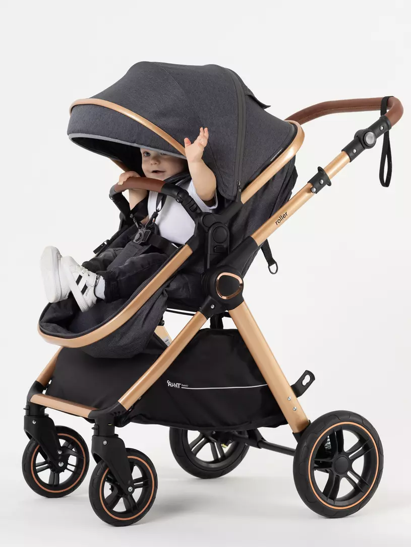 Детская коляска-трансформер RANT BASIC ROLLER GOLD 2024 - эргономичная и легкая! Особенности модели: трансформация в два движения; перекидная и регулируемая по высоте ручка; реверсивный блок; подстаканник для любимых напитков; тормоз-"качелька", не пачкающий обувь; эффектный внешний вид.