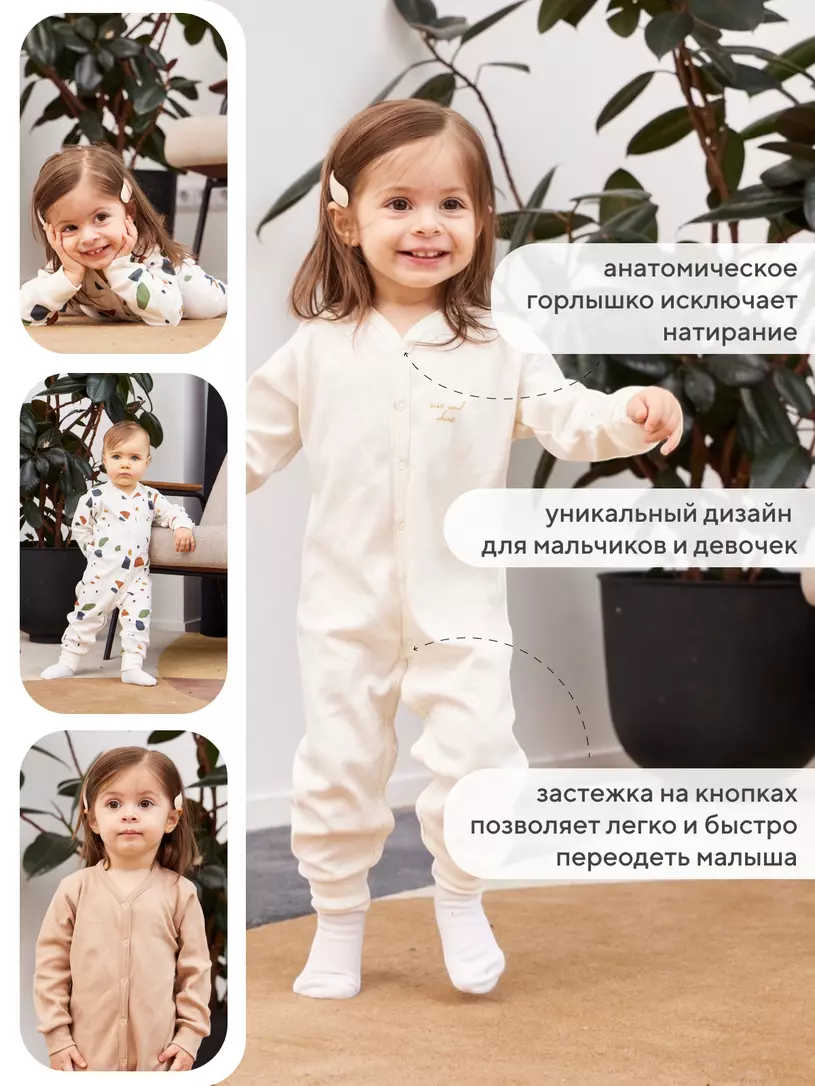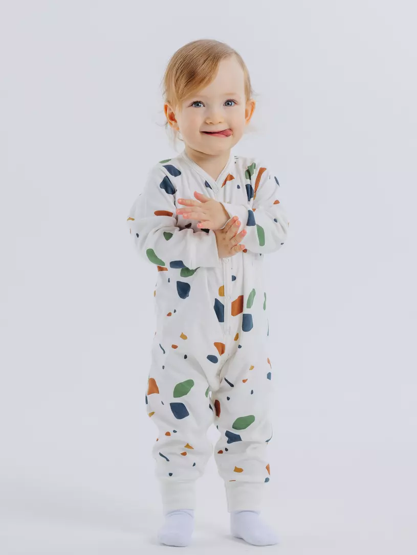 Комбинезон (слип) с открытыми стопами из этой коллекции станет настоящим украшением гардероба вашего ребенка. Благодаря кнопочкам, расположенным по всей длине изделия, вам будет удобно переодевать малыша. А нежные, эластичные манжеты не будут давить на крохотные запястья и щиколотки.