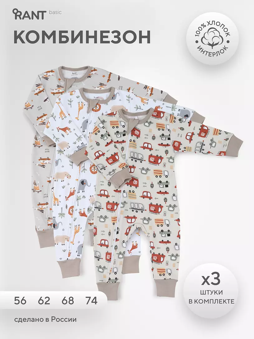 перейти к описаниюКомбинезон на молнии 3 шт. Rant Basic Funny арт. 1290