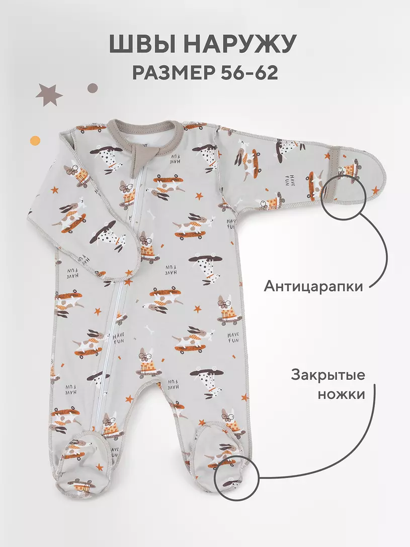 Обращаем ваше внимание: размеры 56 и 62 идут с царапками, швами наружу и закрытой ножкой.