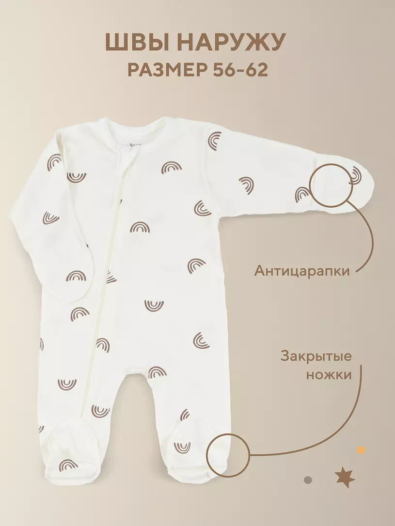 Обращаем ваше внимание: размеры 56 и 62 идут с царапками, швами наружу и закрытой ножкой.