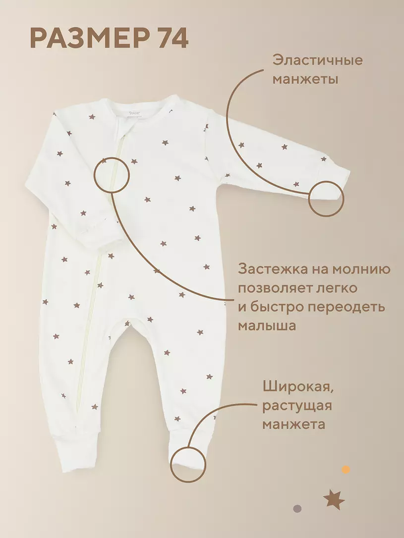 Комбинезоны (слипы) из этой коллекции станут настоящим украшением гардероба вашего крохи. Благодаря молнии, расположенной по всей длине, процесс переодевания стал еще проще. Маленький подбородок защищен мягким клапаном от бегунка молнии.