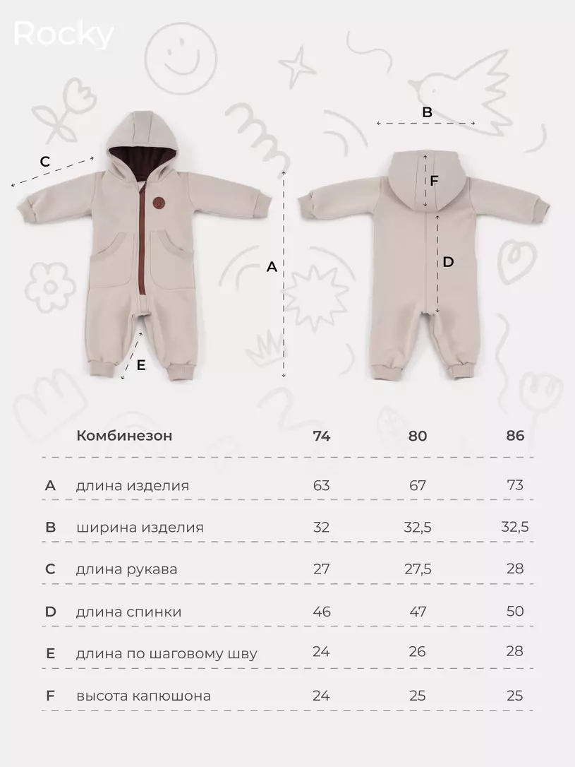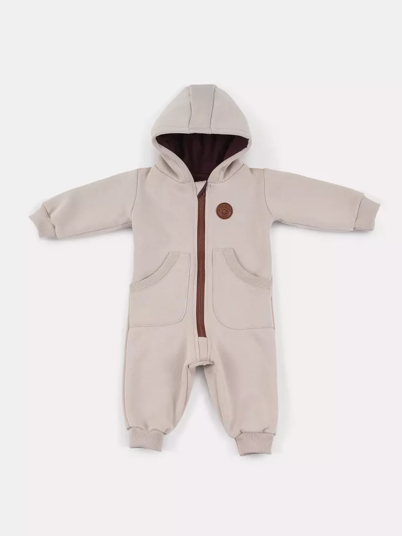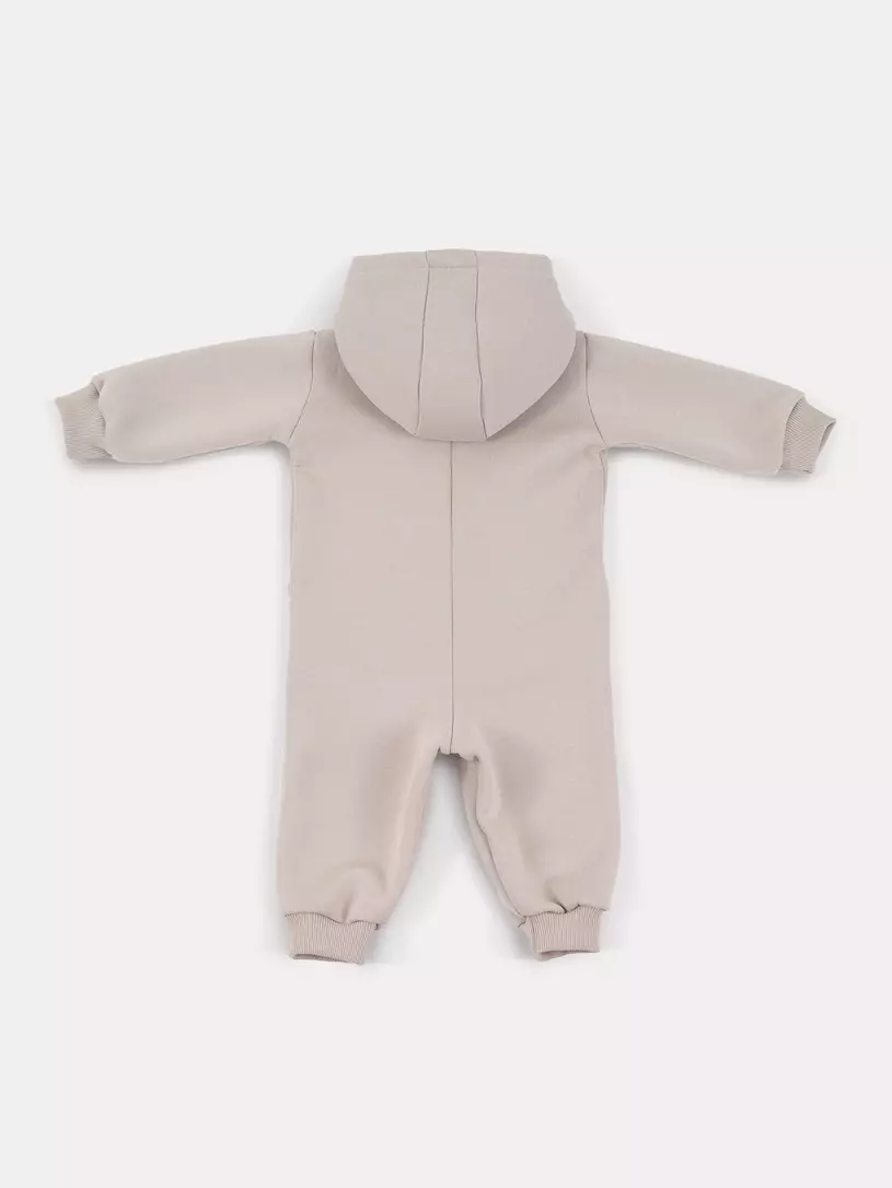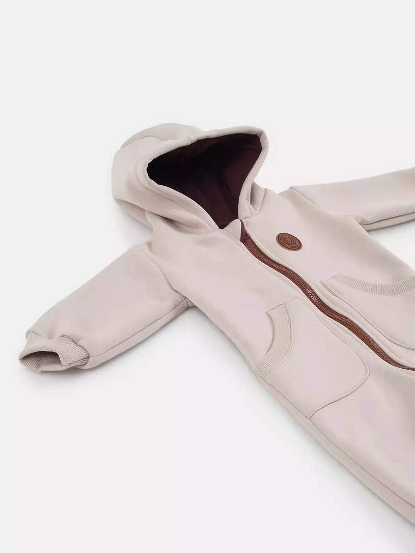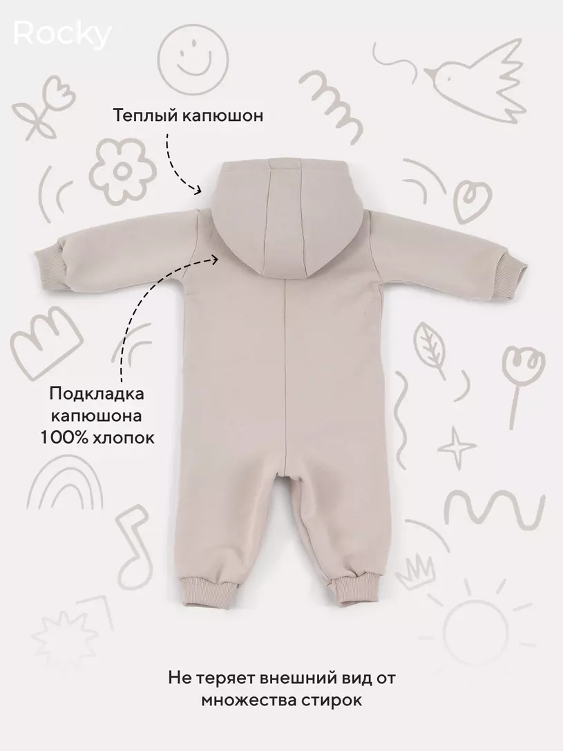- комбинезон выполнен из гипоаллергенных и невероятно приятных на ощупь тканей. Основной материал - нежный и теплый футер 3-х нитка с начесом, подклад в капюшоне - 100% хлопок.