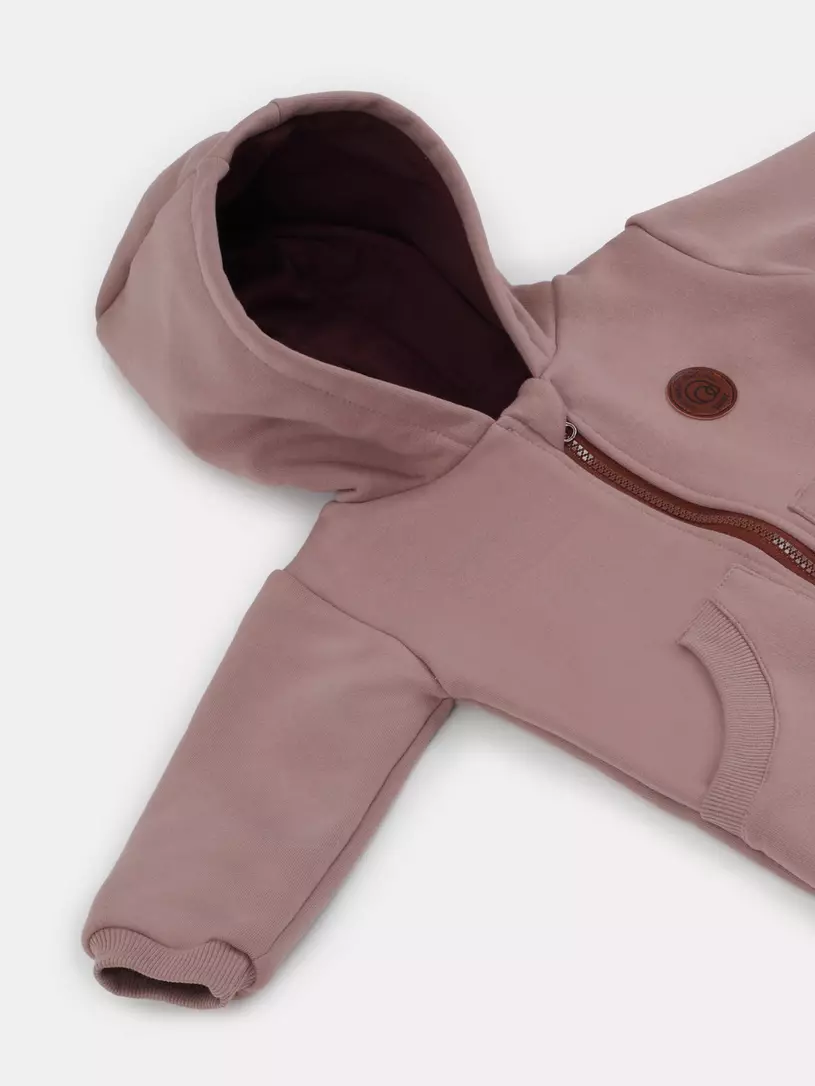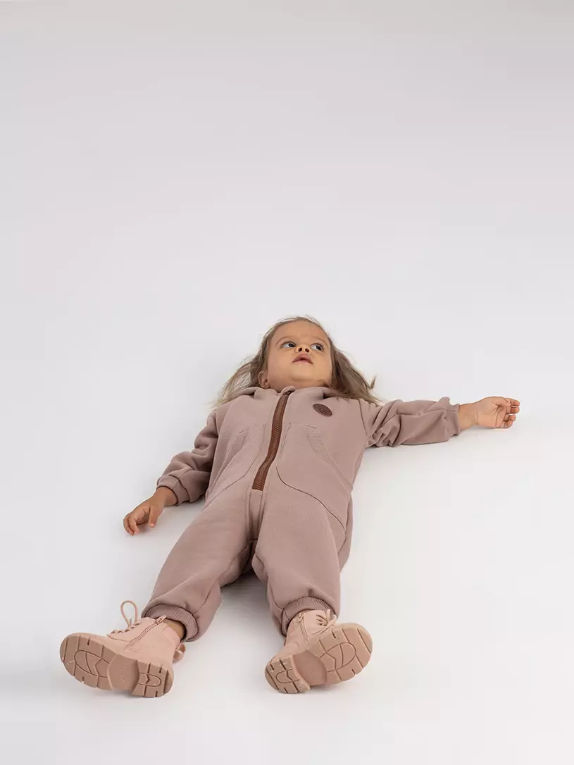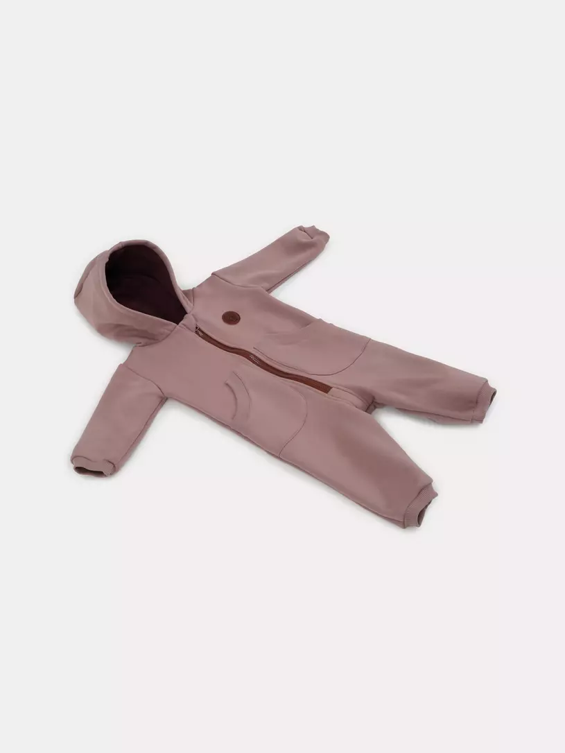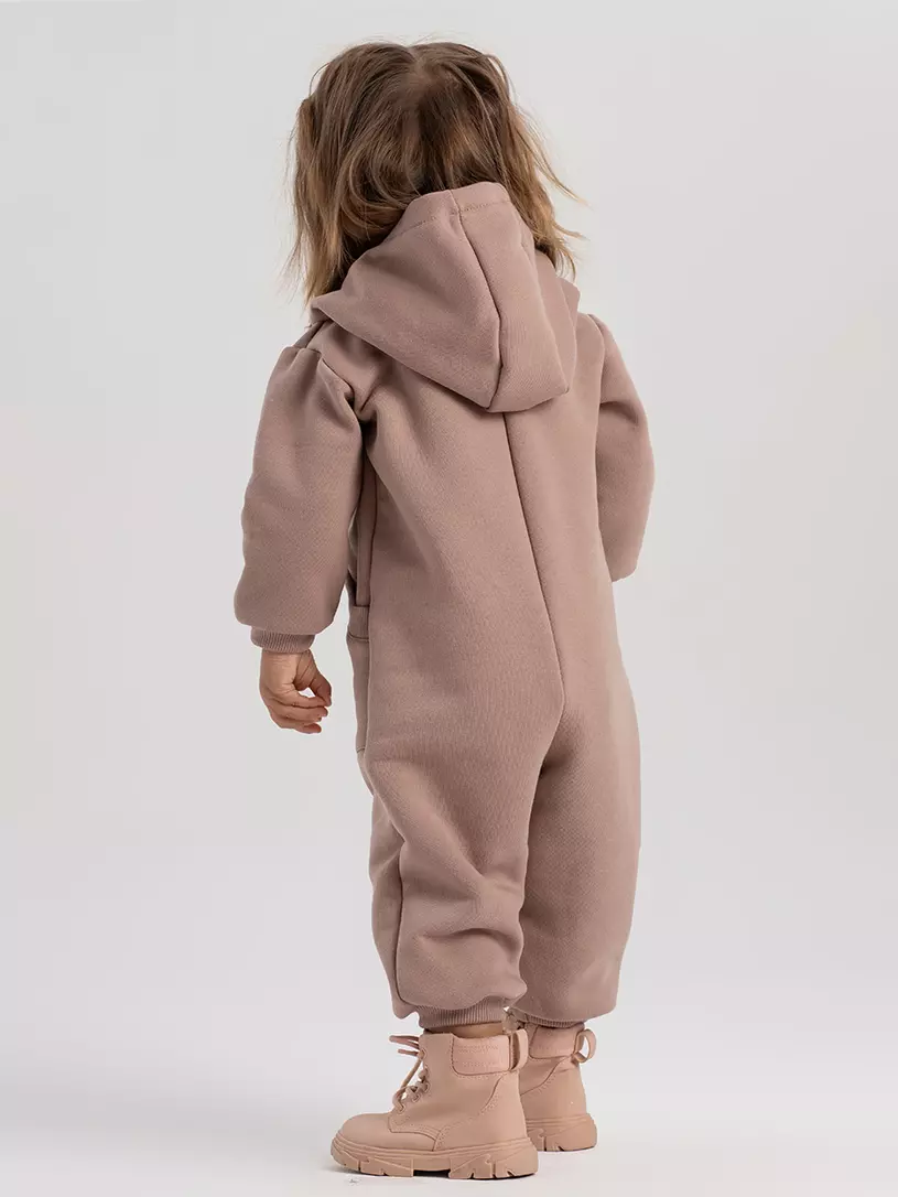 - комбинезон выполнен из гипоаллергенных и невероятно приятных на ощупь тканей. Основной материал - нежный и теплый футер 3-х нитка с начесом, подклад в капюшоне - 100% хлопок.