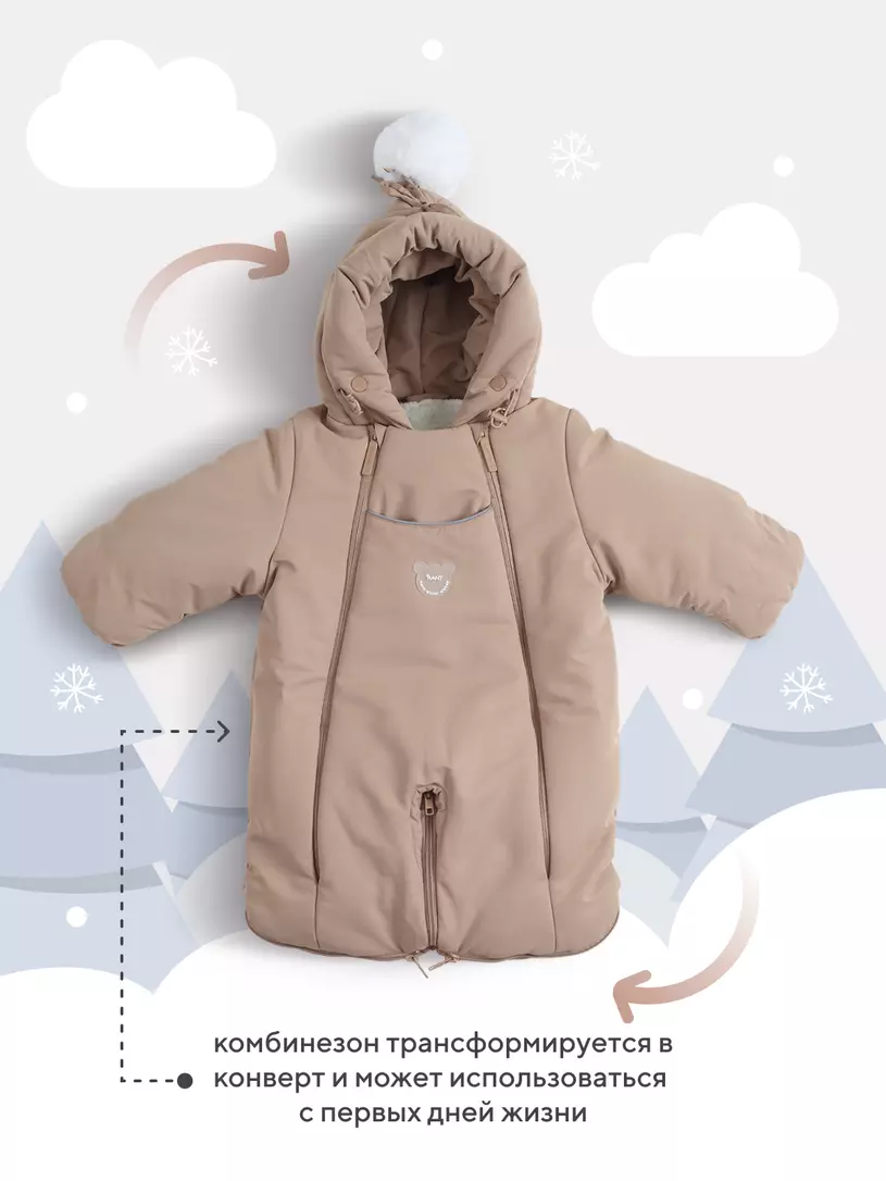 - легко трансформируется из конверта с рукавами в комбинезон с полноценными штанинами