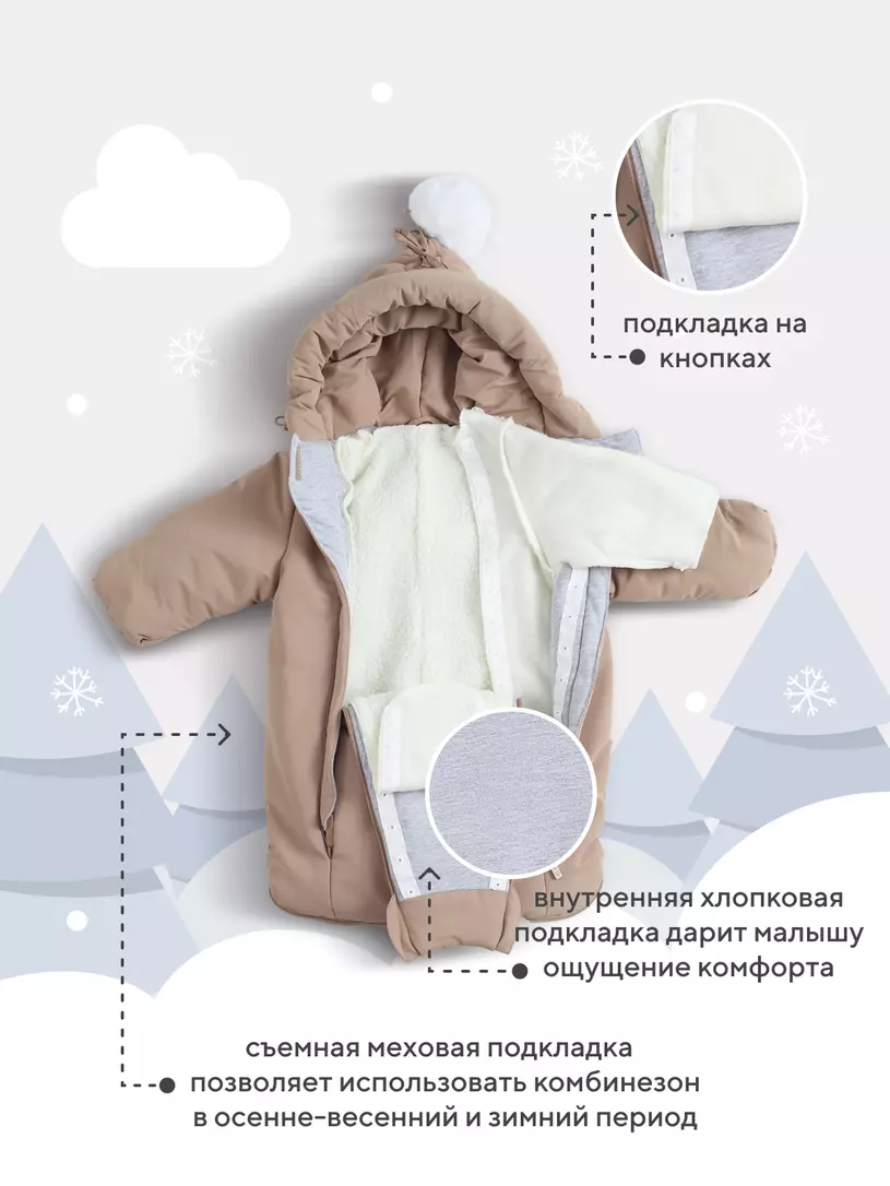 - съемная меховая подкладка позволяет использовать комбинезон как в осенне-весенний, так и в зимний период