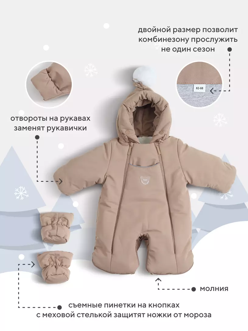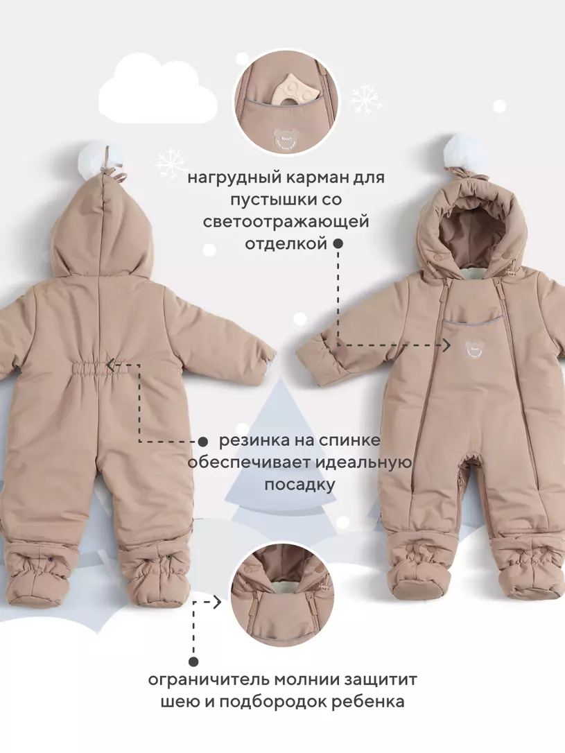 - регулируемая глубина капюшона позволяет использовать любые шапки в тандеме с комбинезоном