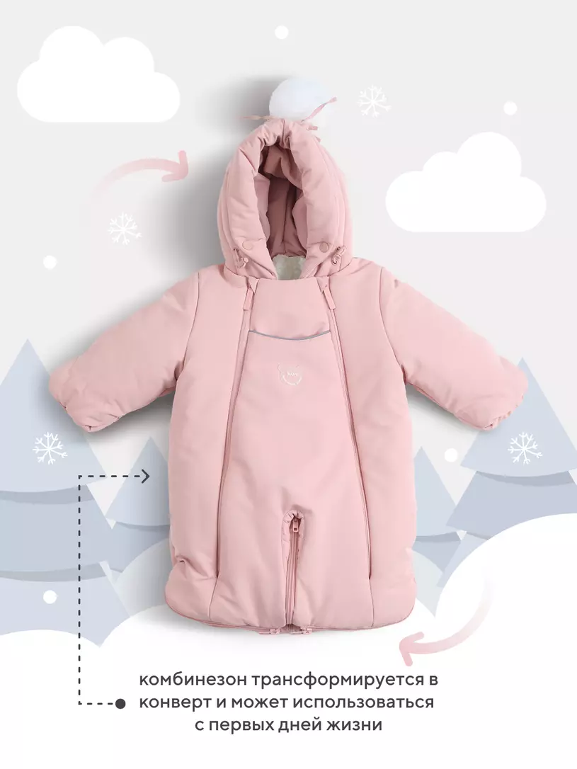 - легко трансформируется из конверта с рукавами в комбинезон с полноценными штанинами