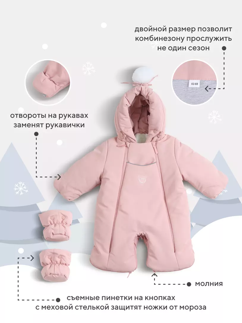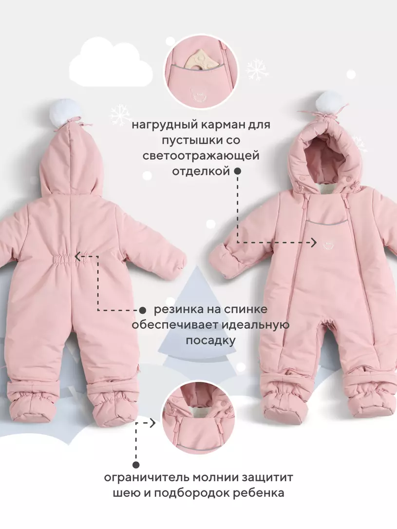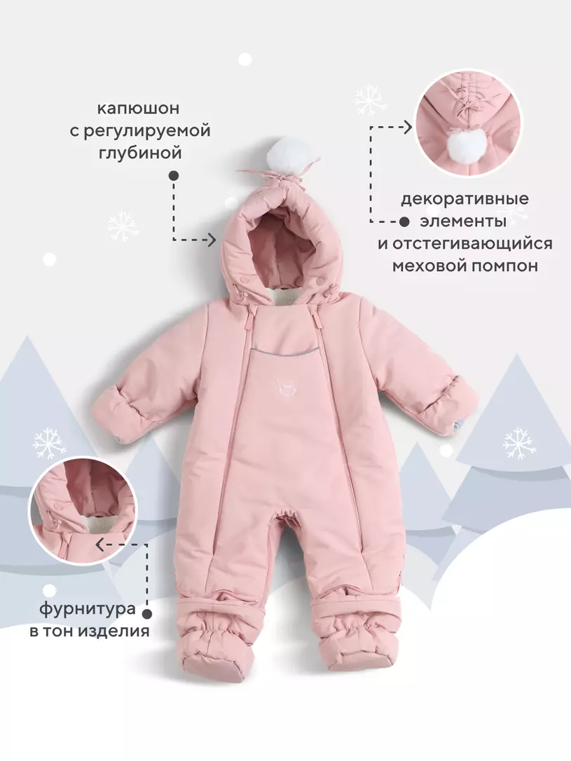 - регулируемая глубина капюшона позволяет использовать любые шапки в тандеме с комбинезоном