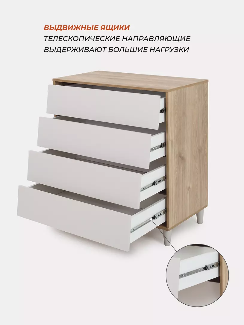 • телескопические направляющие позволят ящикам выдерживать серьезные нагрузки