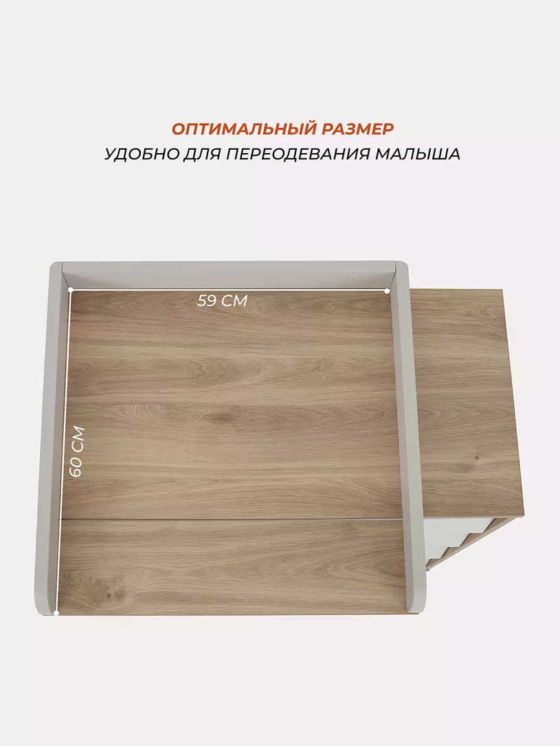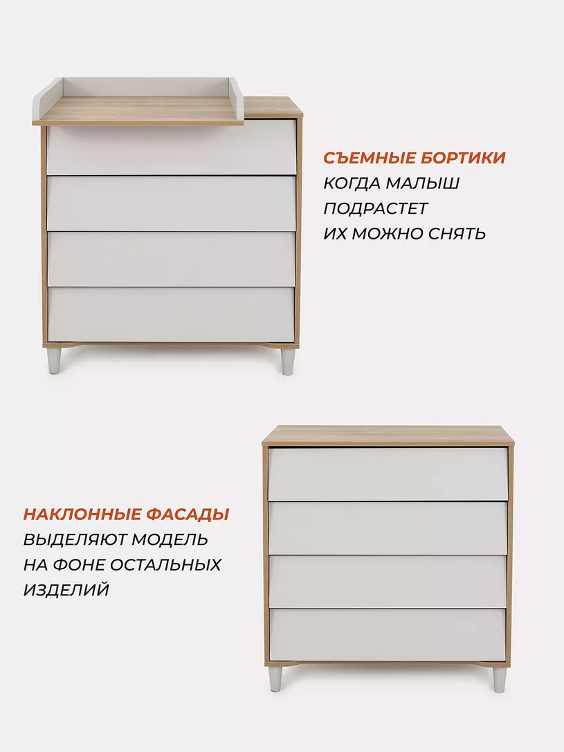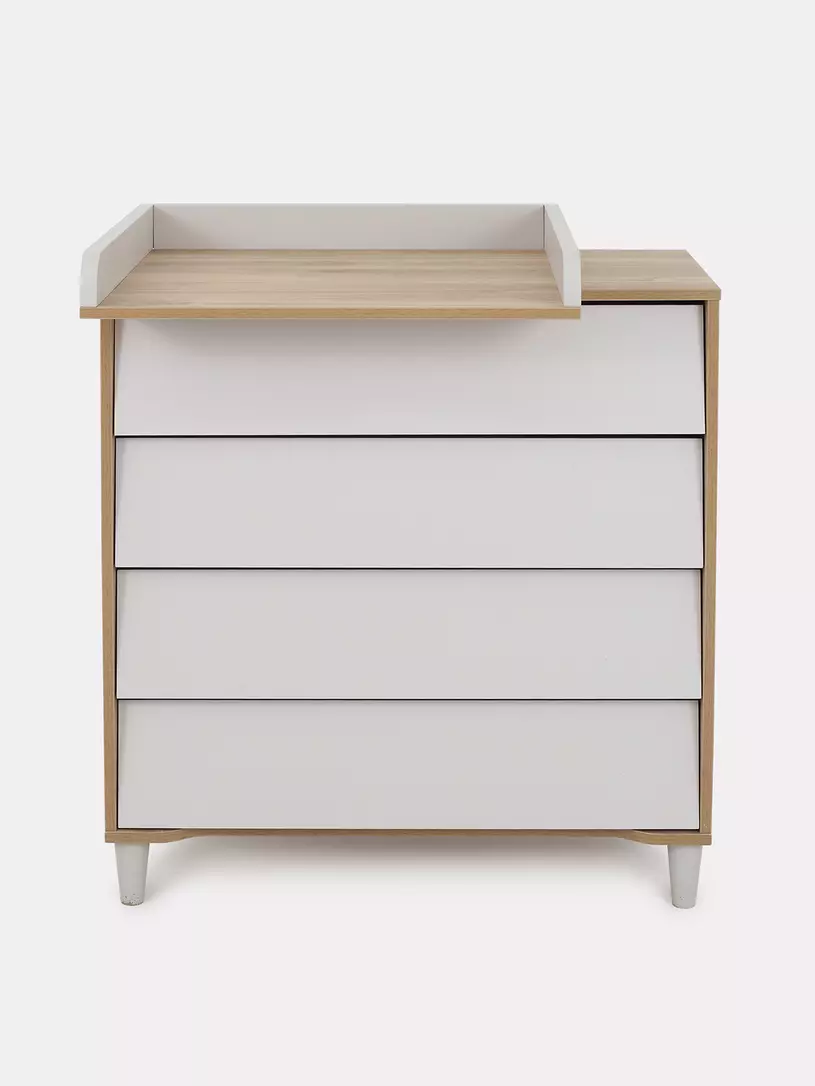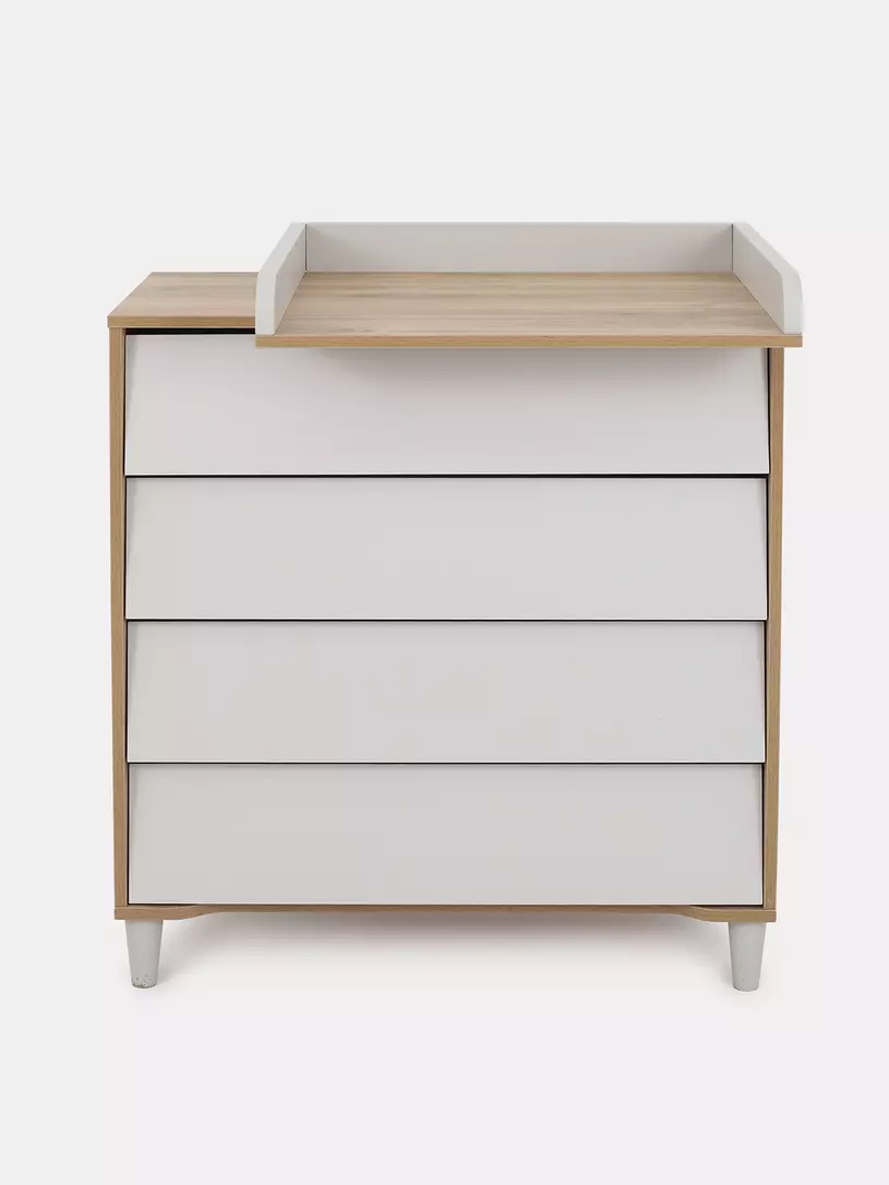 • комод дополнен откидным бортиком, превращающим его в полноценный пеленальный столик. Когда малыш подрастёт, бортик можно будет снять.