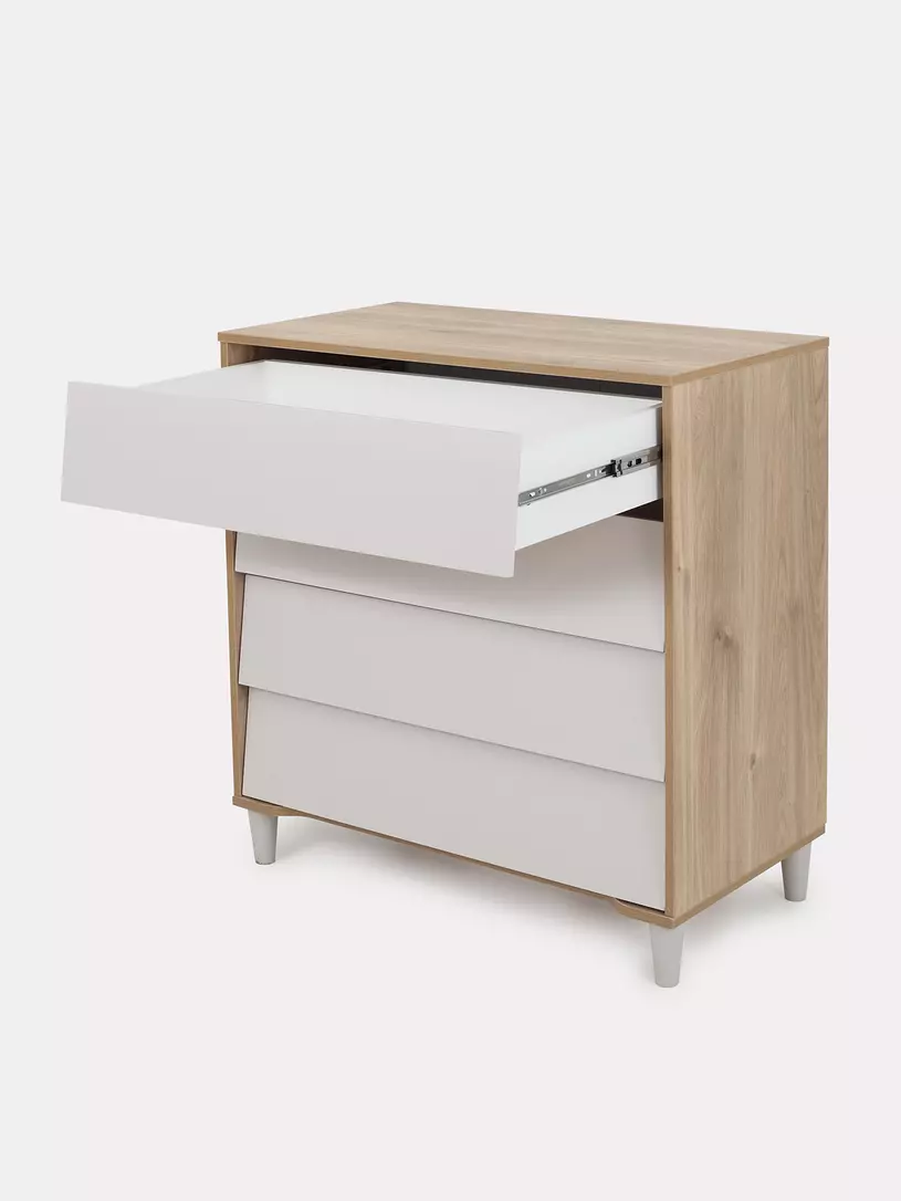 Эргономичный пеленальный комод Bergen, выполненный в трендовом стиле софт-минимализм, станет вашим надежным помощником с первых дней! Модель дополнена съемной накладкой для пеленания, усиленными телескопическими направляющими, эффектными наклонными фасадами.