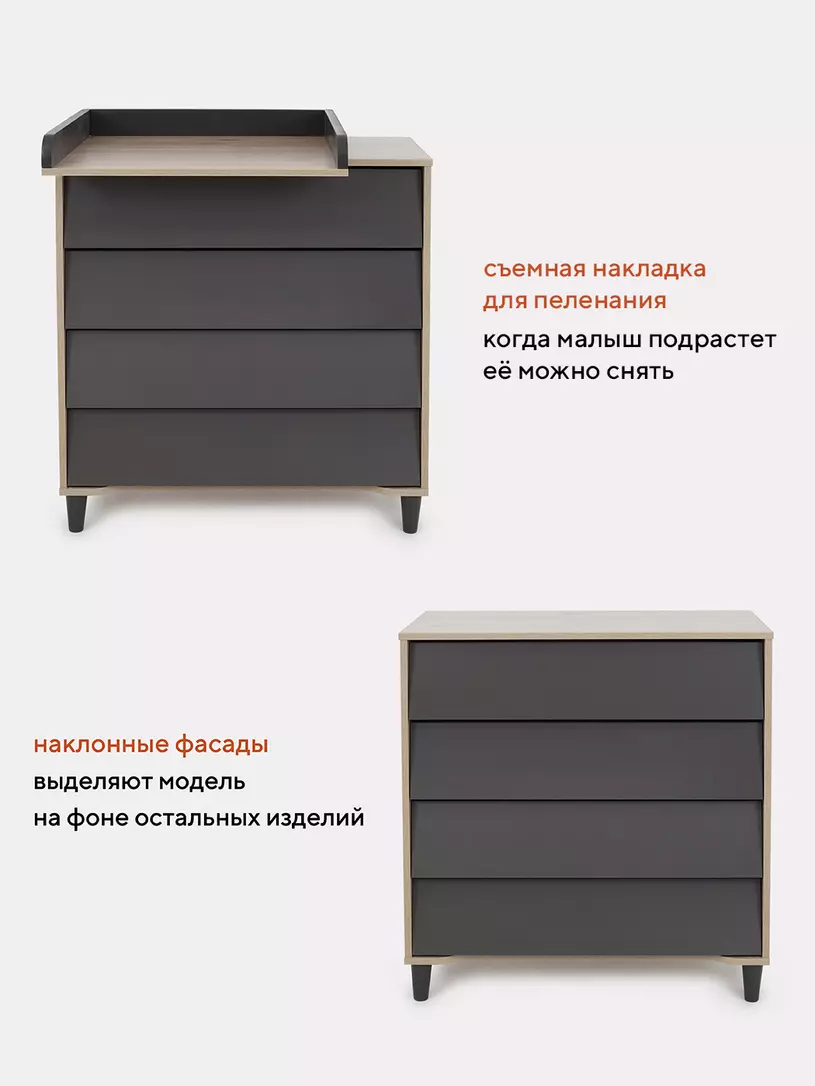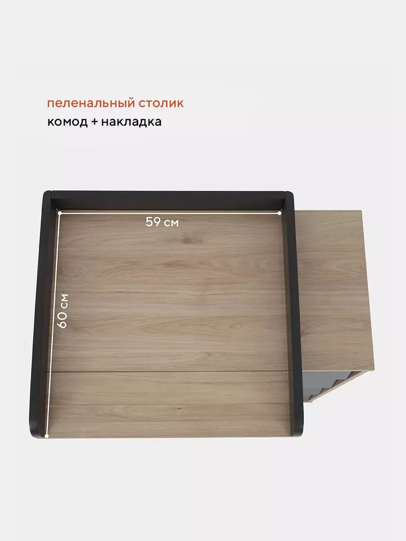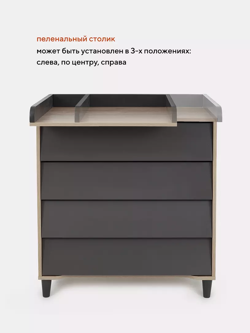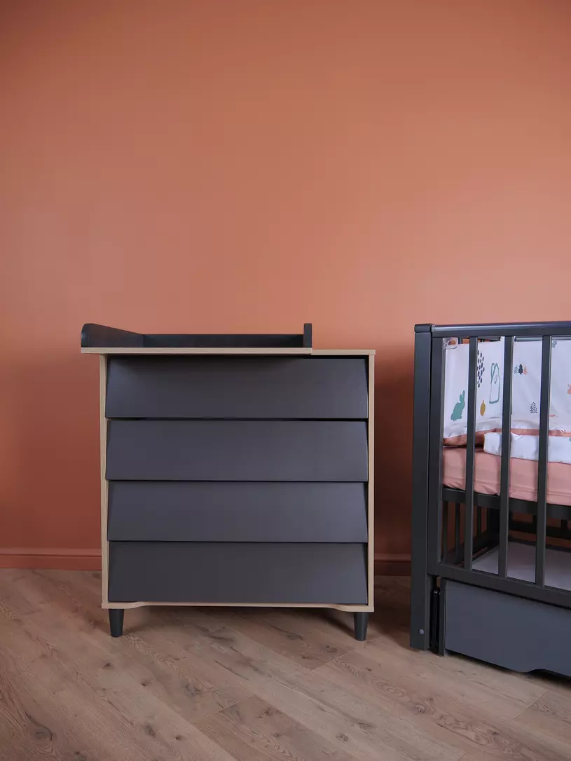 - комод дополнен откидным бортиком, превращающим его в полноценный пеленальный столик. Когда малыш подрастёт, бортик можно будет снять.