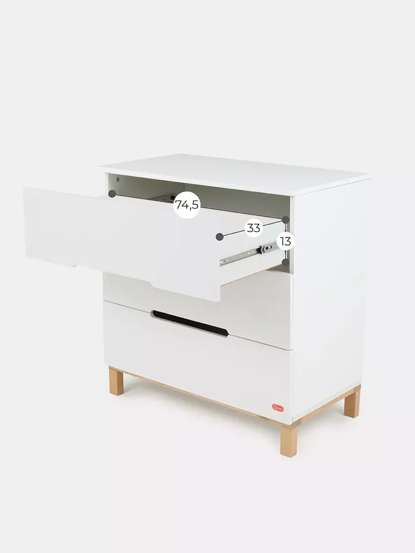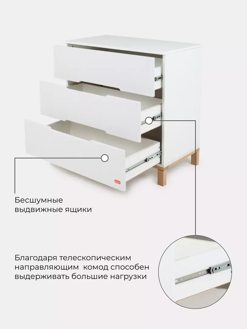 - вместительные выдвижные ящики бесшумны - они не потревожат спящего малыша