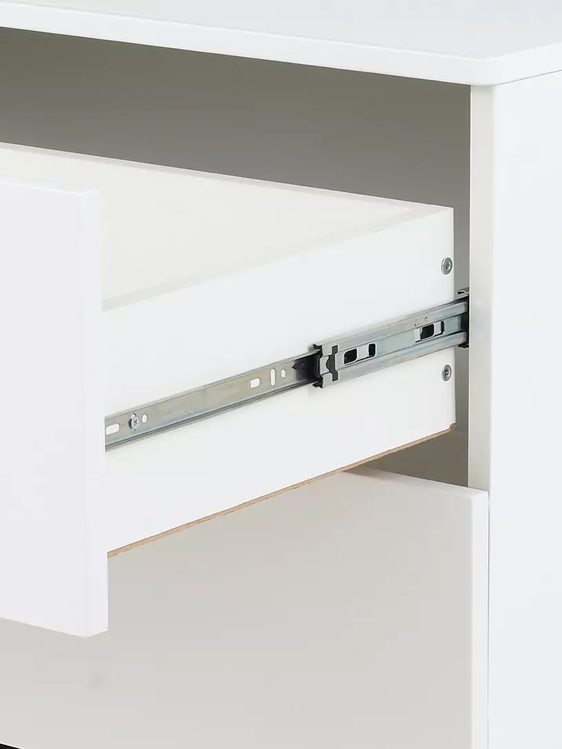 - к тому же ящики дополнены специальными телескопическими направляющими, благодаря которым комод способен выдерживать большие нагрузки на протяжении длительного времени