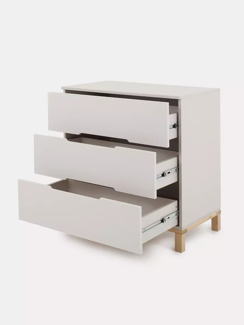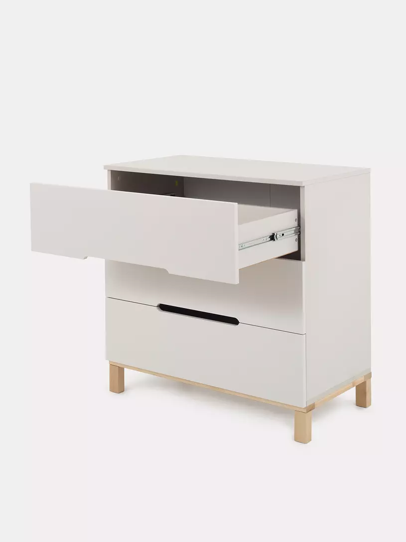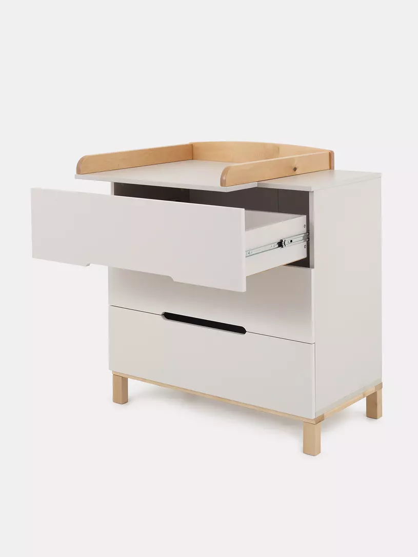 Пеленальный комод Indy, выдержанный в трендовом стиле экоминимализм, ненавязчиво расскажет о вашем тонком вкусе. Роскошная модель дополнена съемной накладкой для пеленания, усиленными телескопическими направляющими, стильными выпилами вместо накладных ручек.