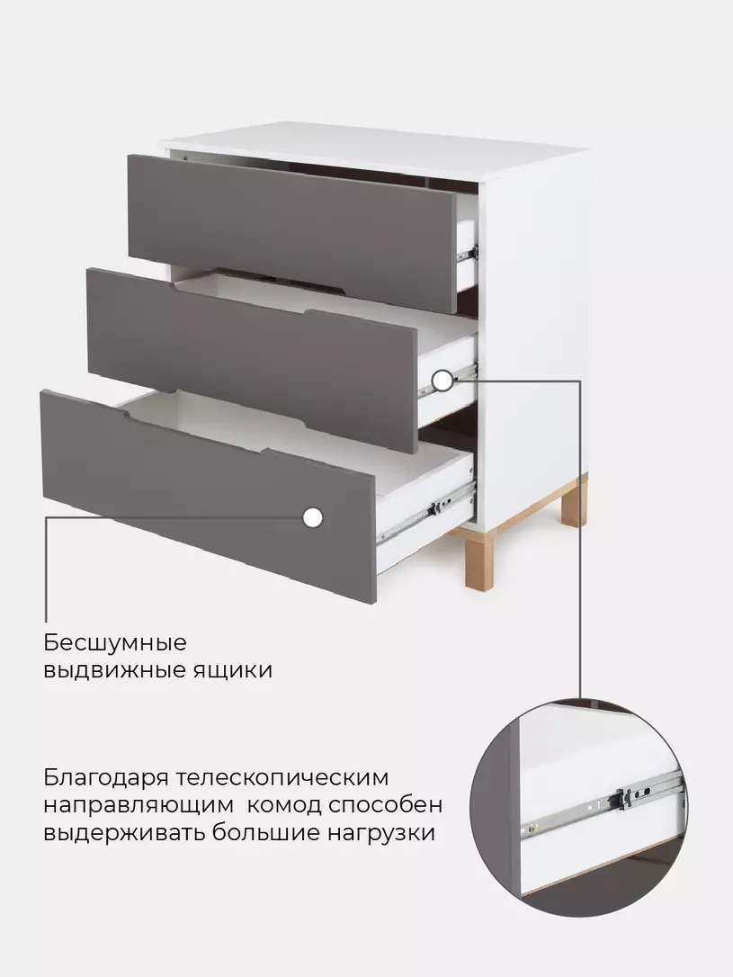 - вместительные выдвижные ящики бесшумны - они не потревожат спящего малыша
