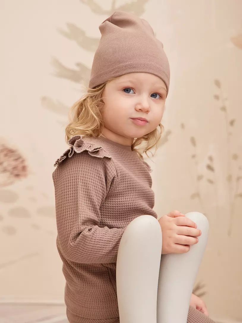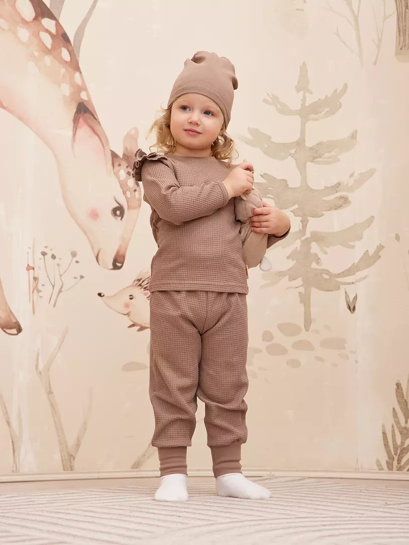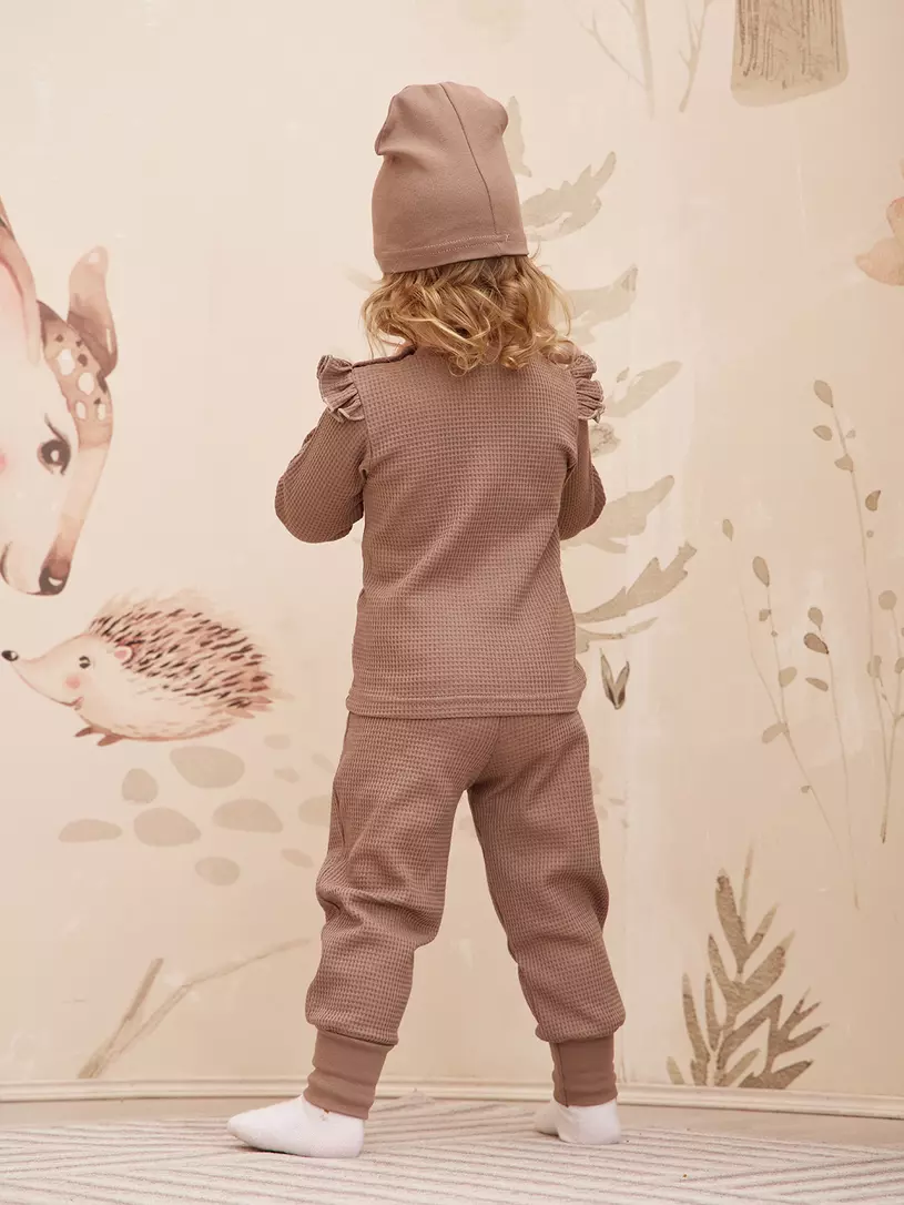 Комплект для девочки (лонгслив, штанишки, шапочка) Rant Waffy Brown арт. 2-92