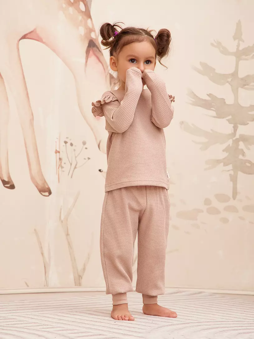 Комплект для девочки (лонгслив, штанишки, шапочка) Rant Waffy Latte арт. 2-92