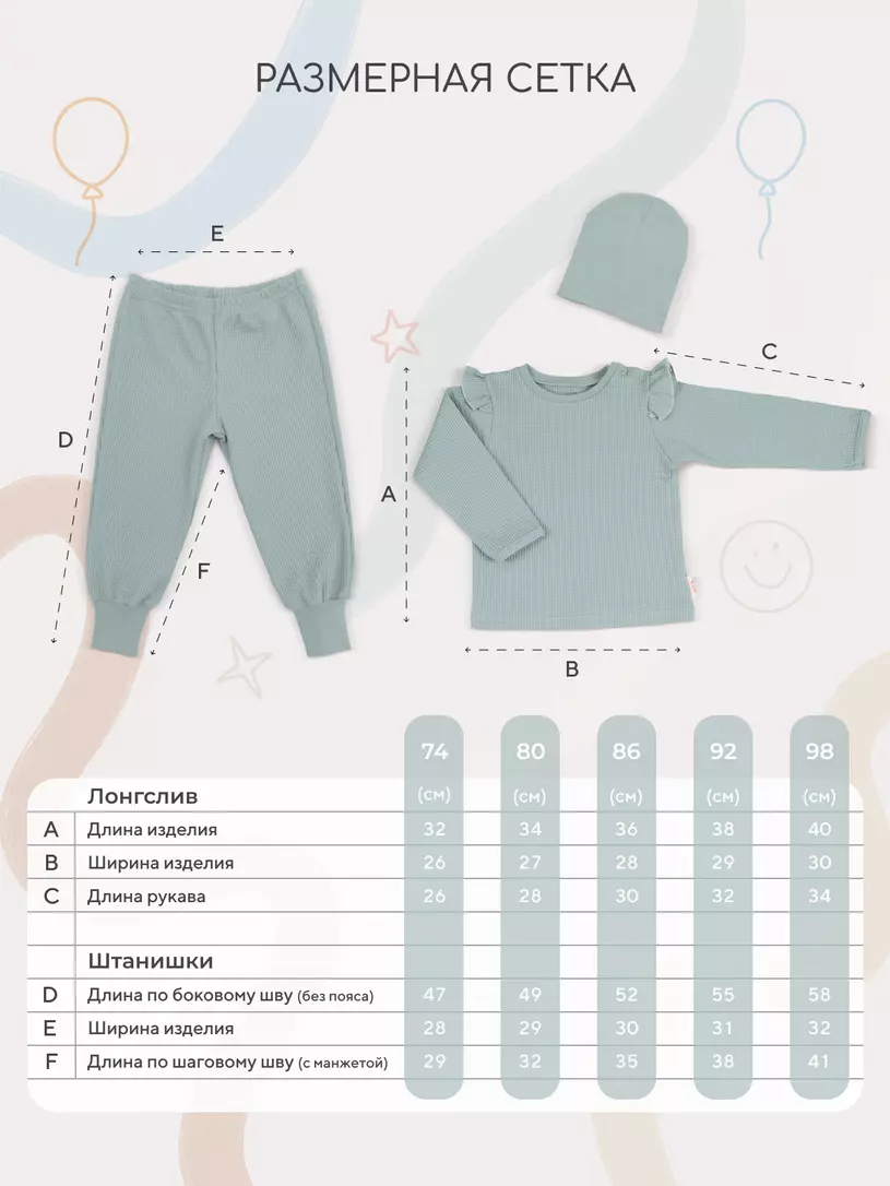 Комплект для девочки (лонгслив, штанишки, шапочка) Rant Waffy Mint арт. 2-92