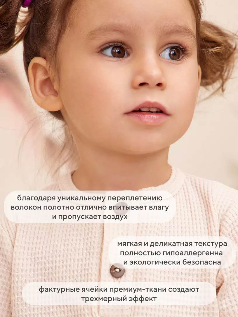 Эксклюзивная коллекция WAFFY буквально соткана из заботы и наполнена бесконечной любовью к нашим маленьким клиентам. Деликатные спокойные расцветки, натуральные ткани премиум-класса (фактурный вафельный трикотаж), качественная фурнитура, комфортное лекало, лаконичное исполнение, сочетающиеся между собой изделия - визитная карточка нашей одежды для малышей.