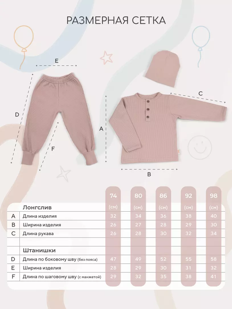 Набор Rant Waffy (лонгслив + штанишки + шапочка) 1-92, 2-92