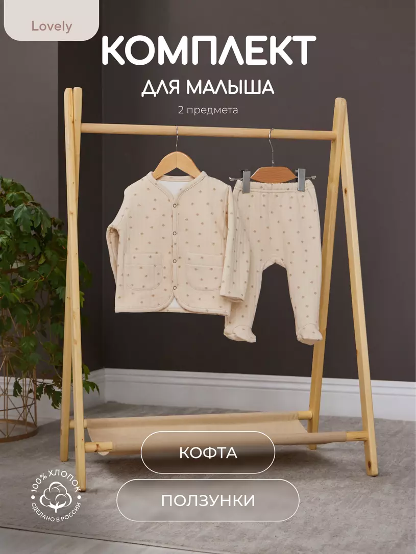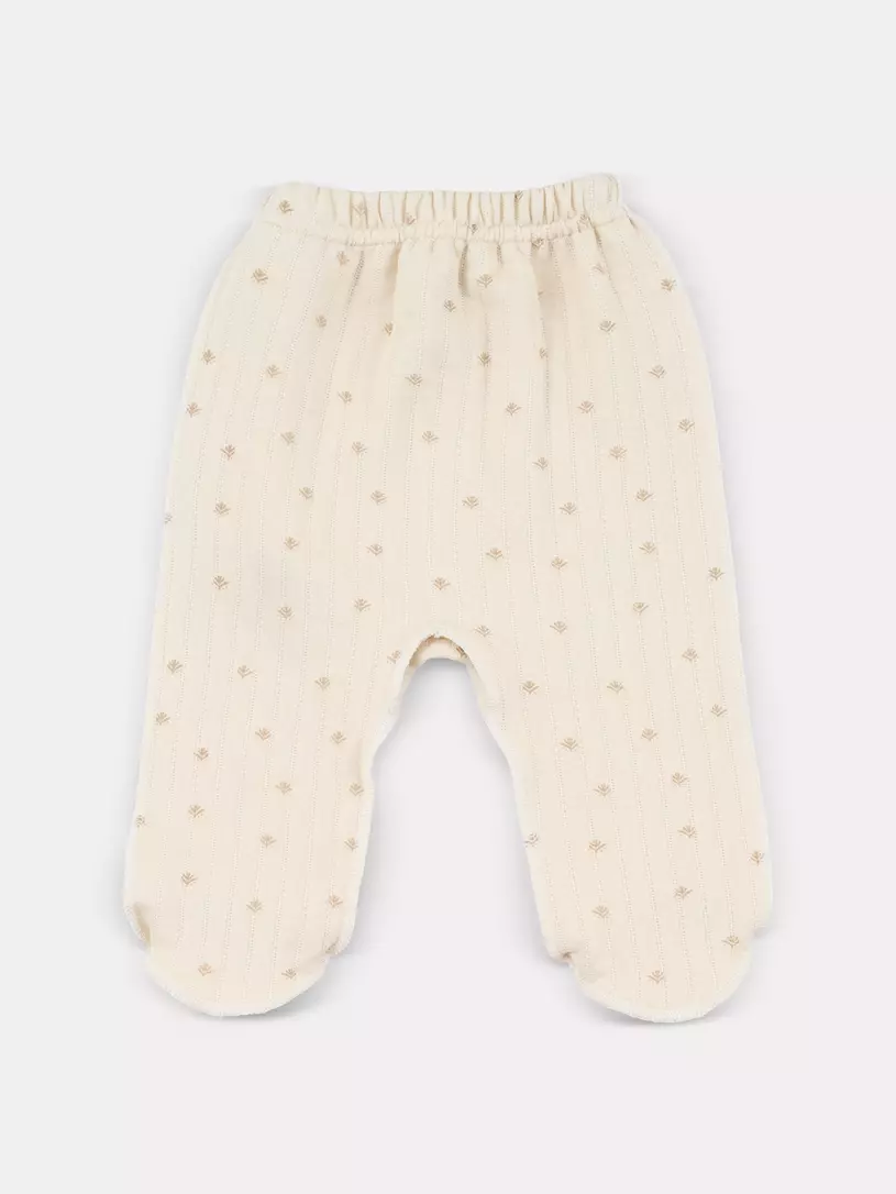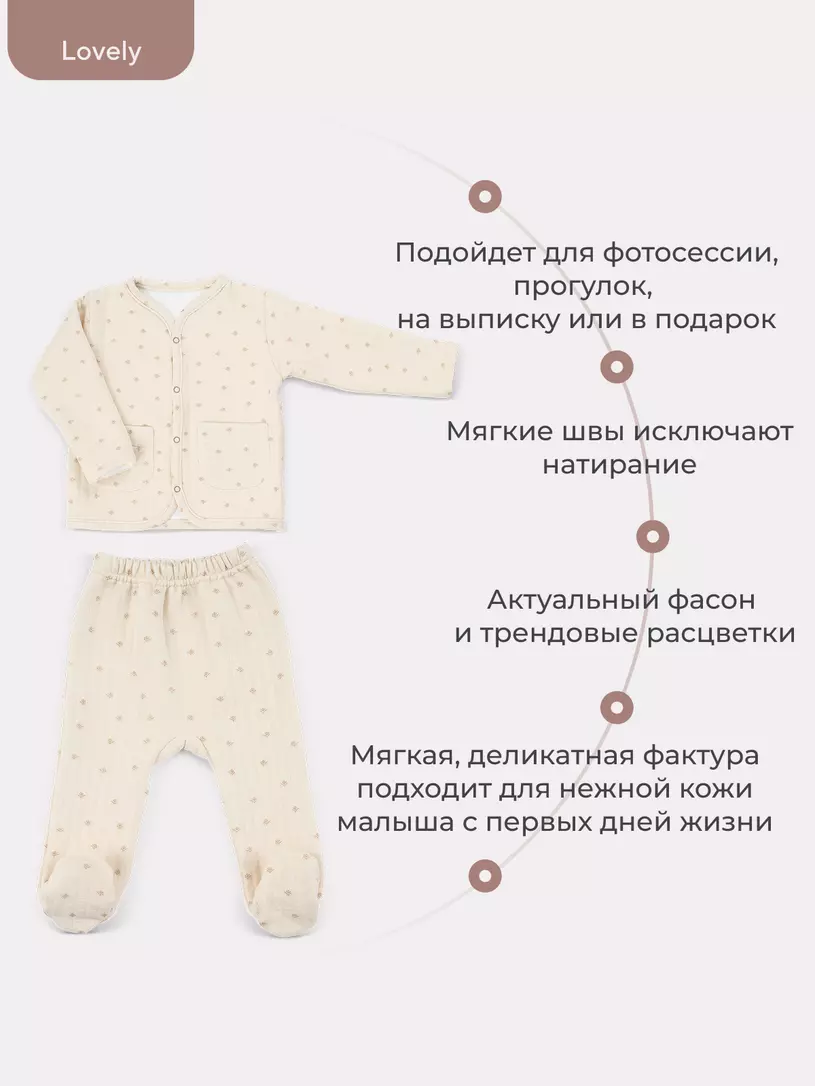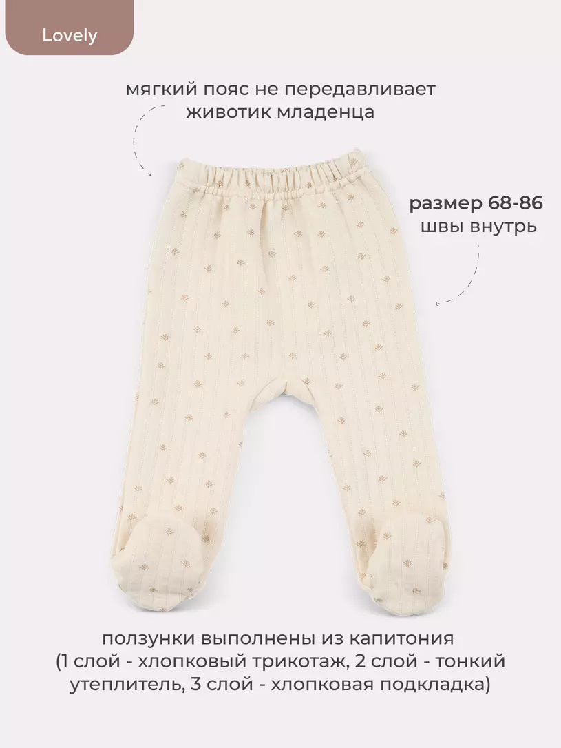 Очаровательная пара из утепленного капитония (многослойная трикотажная ткань с эффектом стяжки, благодаря чему на поверхности появляется объемный рельефный узор) (лицевая и изнаночная стороны - 100% хлопок; слой утеплителя - 100% полиэстер) для дома, прогулок, путешествий и запоминающихся фотосессий. Штанишки дополнены мягким широким поясом и манжетами - на маленькие ножки и крохотный животик резинка давить не будет.