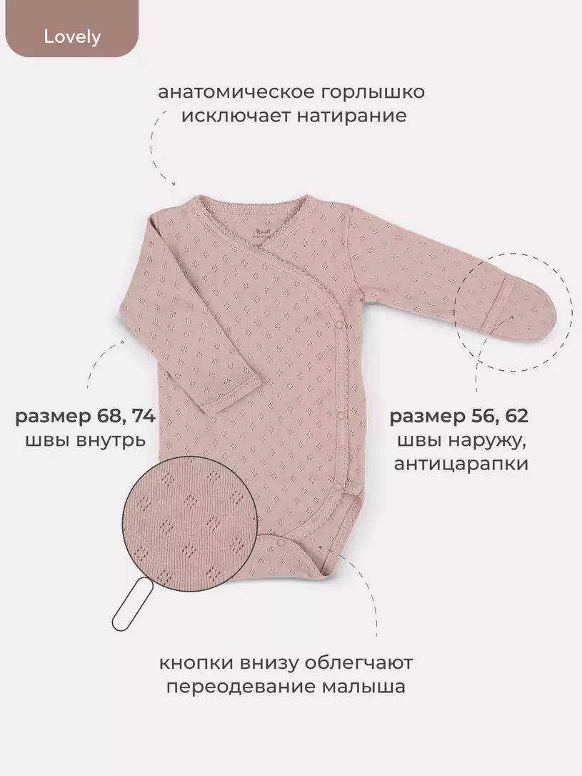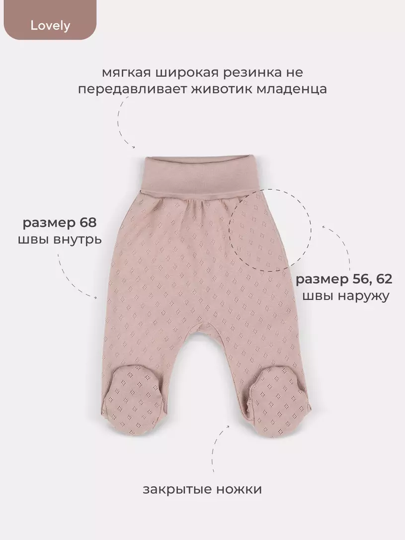 Обращаем ваше внимание: размеры 56 и 62 идут с антицарапками и швами наружу; размеры 56, 62, 68 выполнены с закрытой ножкой.
