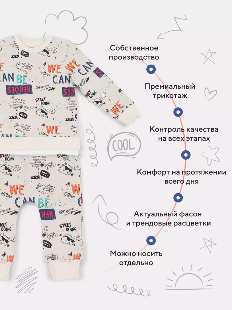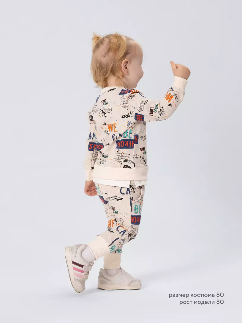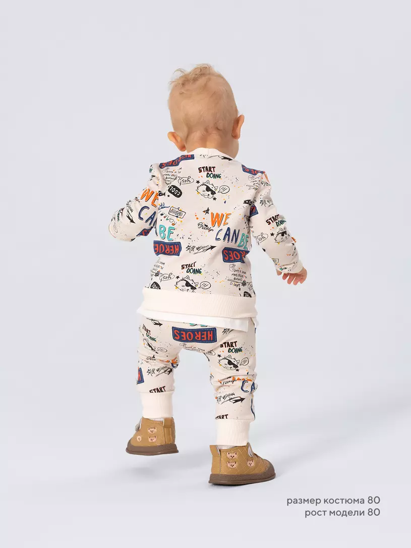 Стильный костюм RANT BASIC COOL подарит малышу невероятный комфорт. Модель покорит вас: дизайнерским принтом, лаконичным исполнением, премиальными тканями, растущей манжетой на штанишках.