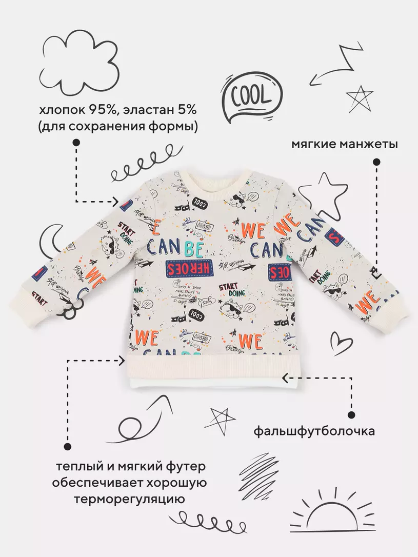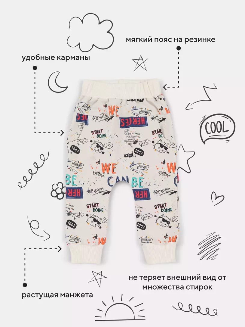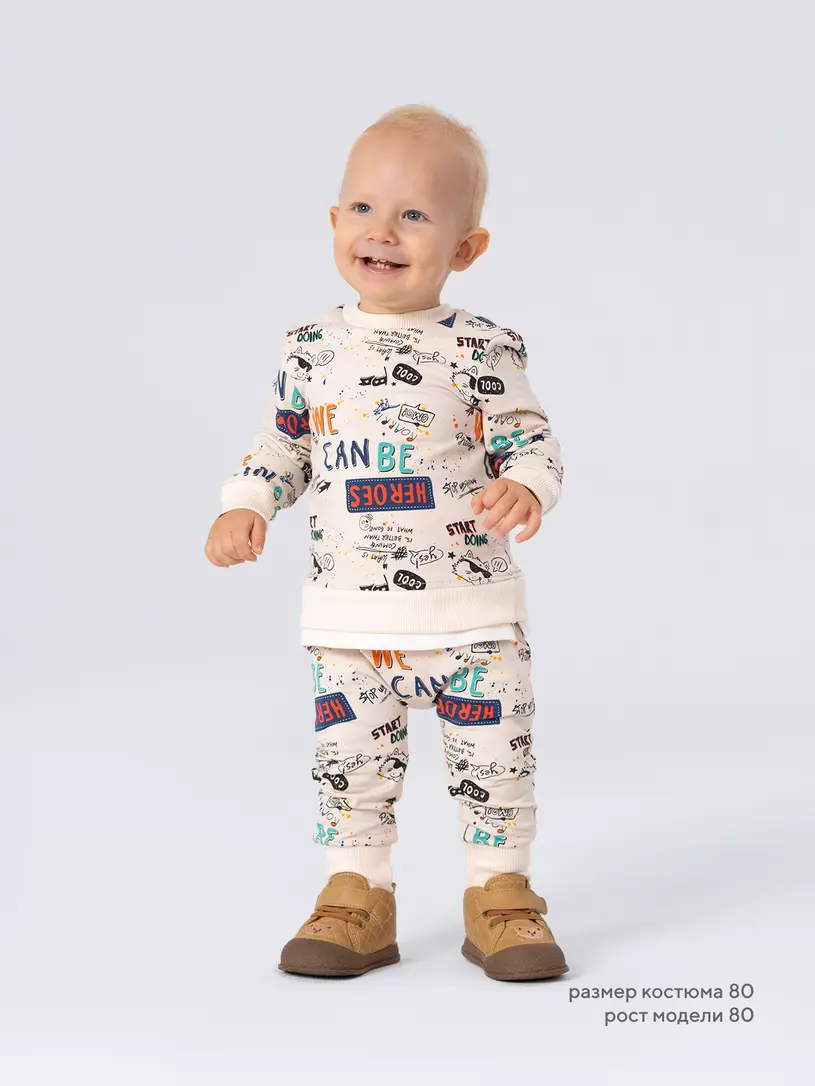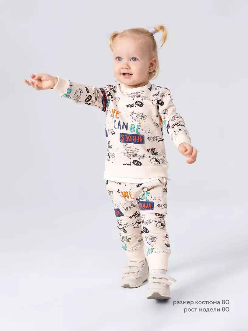 Стильный костюм RANT BASIC COOL подарит малышу невероятный комфорт. Модель покорит вас: дизайнерским принтом, лаконичным исполнением, премиальными тканями, растущей манжетой на штанишках.
