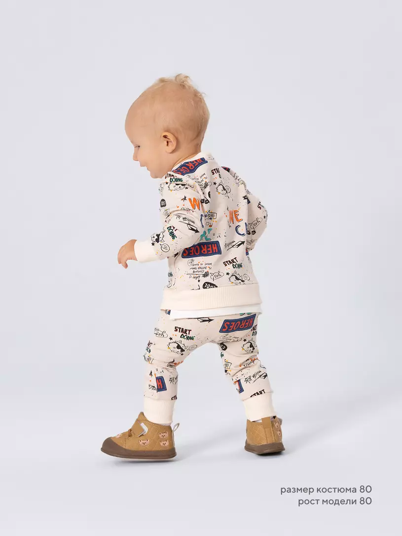 - костюм выполнен из теплого и нежного на ощупь футера (2-нитка), обеспечивающего прекрасную терморегуляцию
