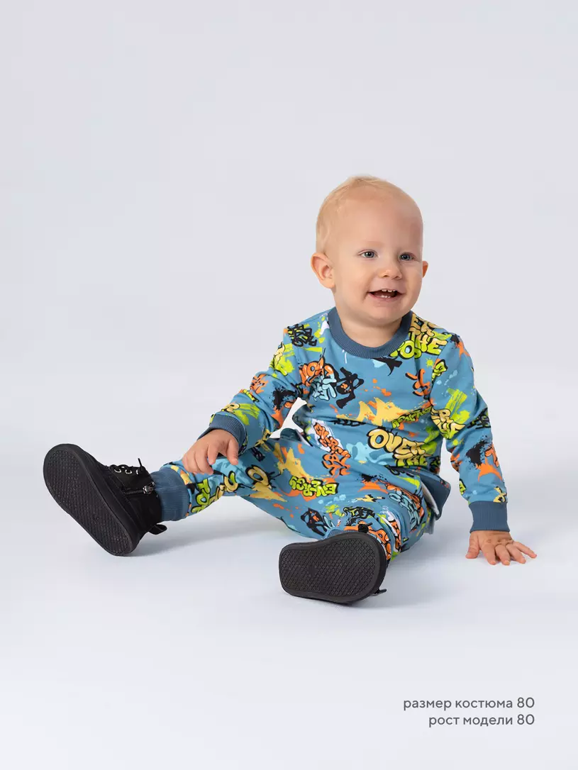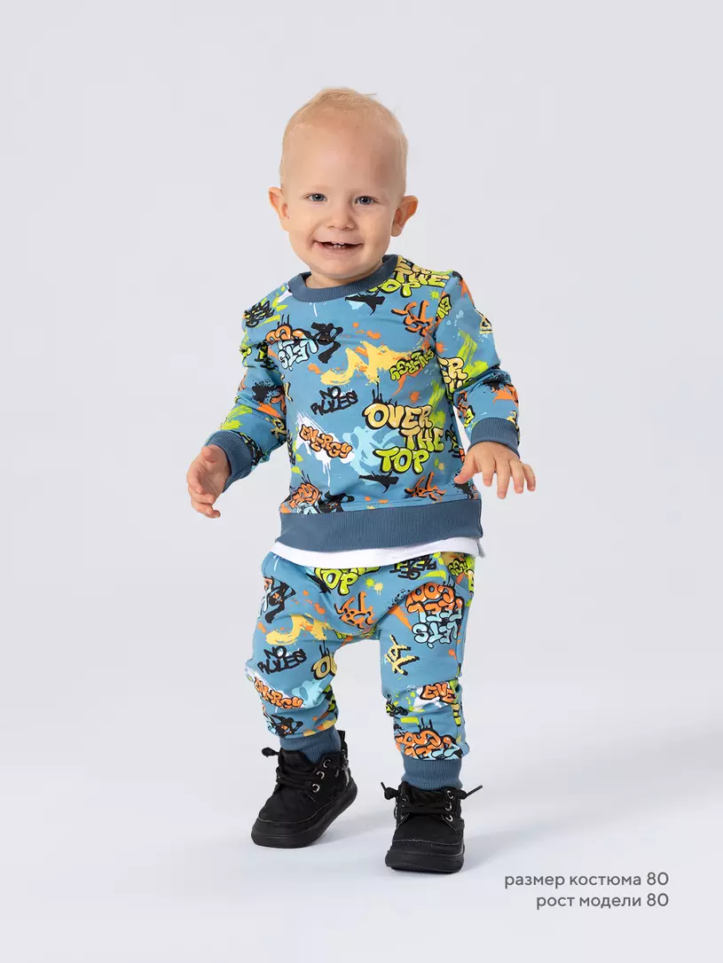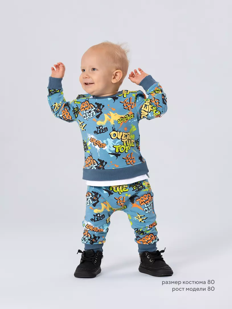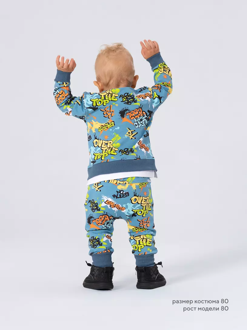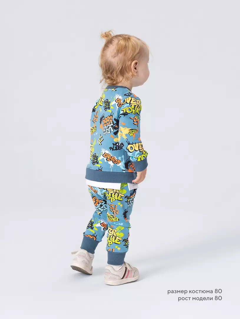 Стильный костюм RANT BASIC COOL подарит малышу невероятный комфорт. Модель покорит вас: дизайнерским принтом, лаконичным исполнением, премиальными тканями, растущей манжетой на штанишках.