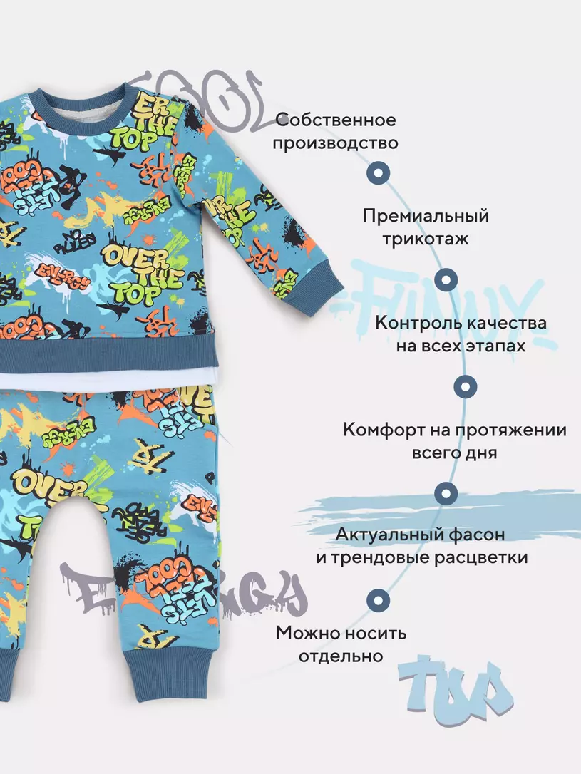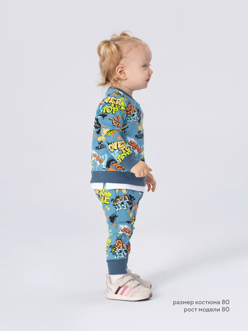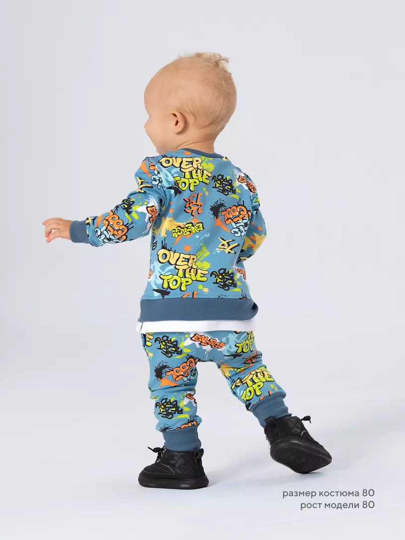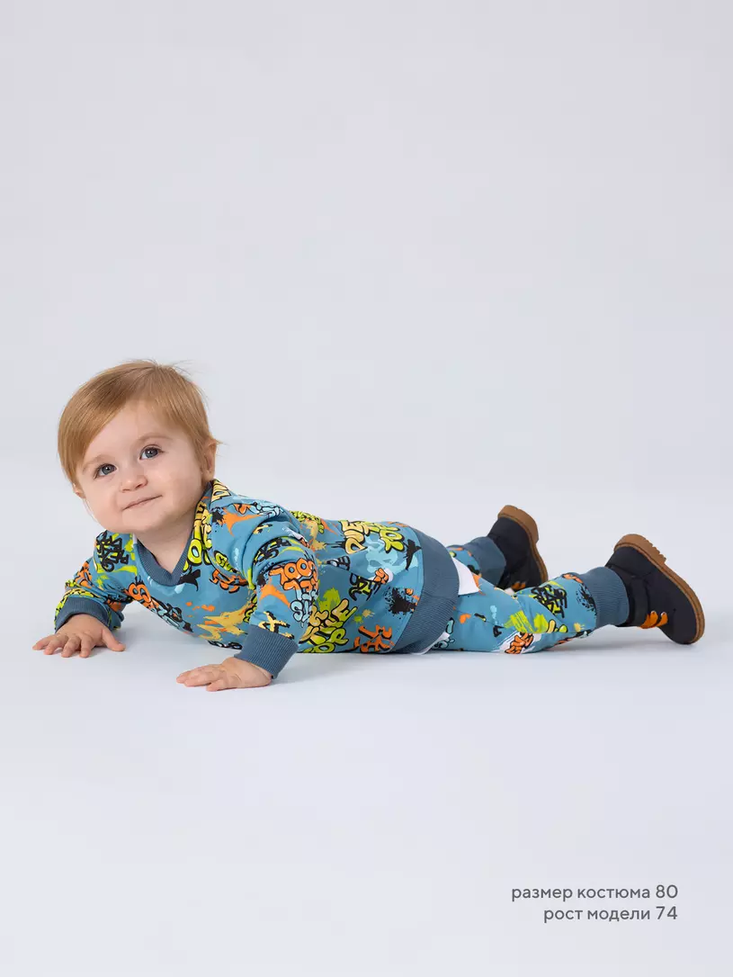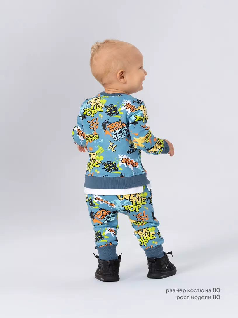 Стильный костюм RANT BASIC COOL подарит малышу невероятный комфорт. Модель покорит вас: дизайнерским принтом, лаконичным исполнением, премиальными тканями, растущей манжетой на штанишках.