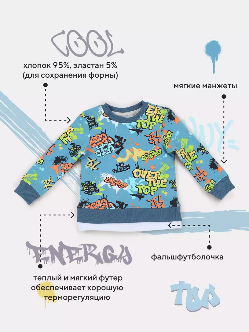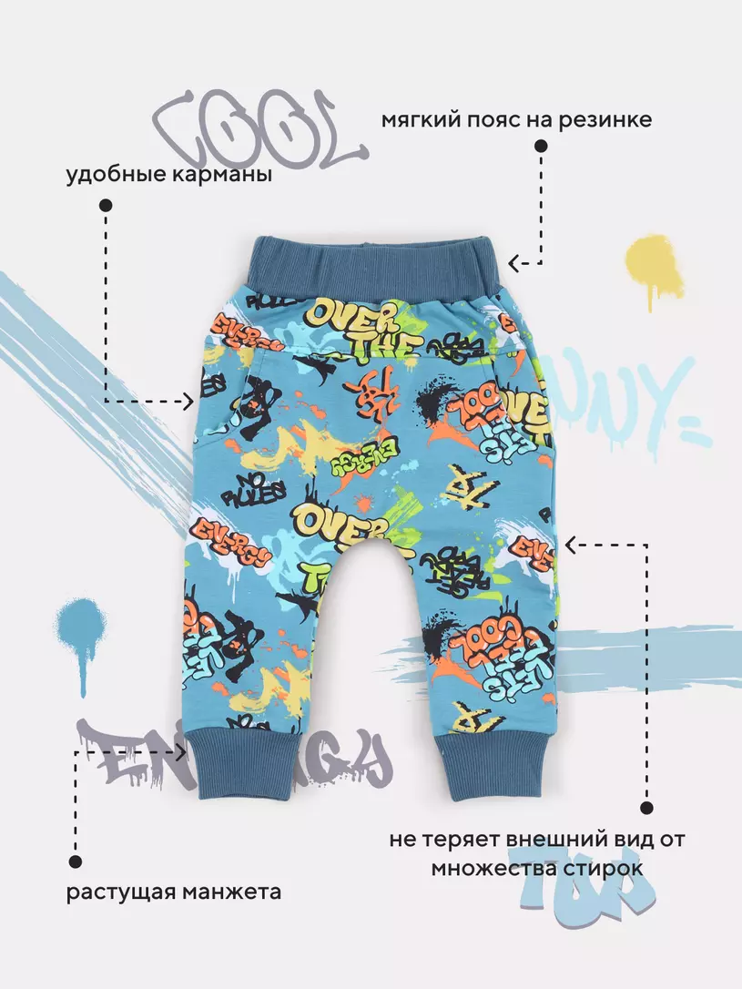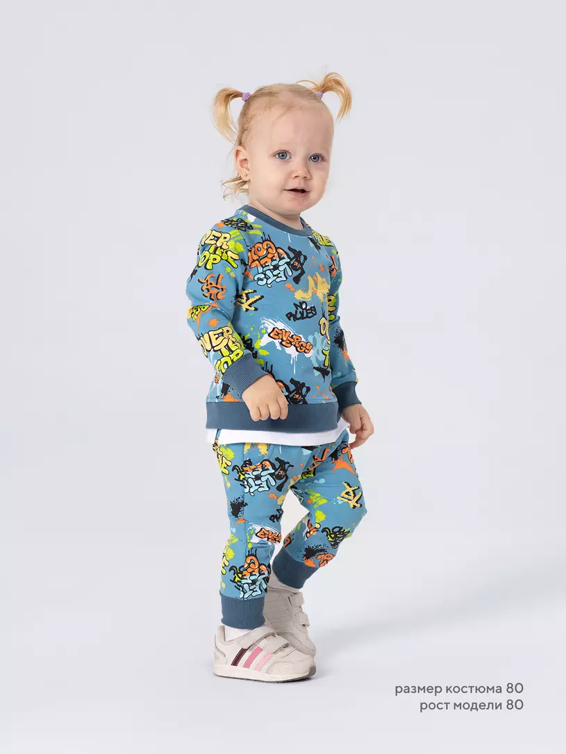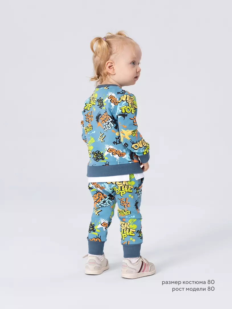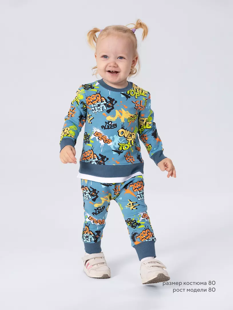 Стильный костюм RANT BASIC COOL подарит малышу невероятный комфорт. Модель покорит вас: дизайнерским принтом, лаконичным исполнением, премиальными тканями, растущей манжетой на штанишках.