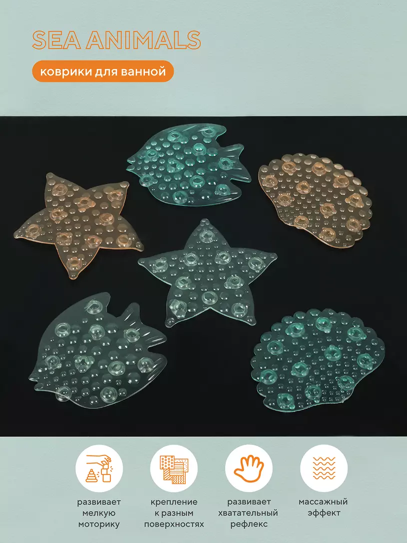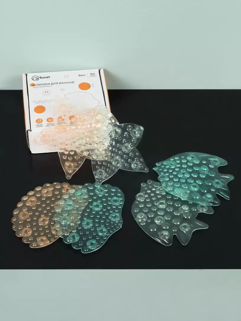 Мини-коврики для ванной RANT SEA ANIMALS помогут насладиться рутинными водными процедурами. Удобный размер для детской ладошки, нетоксичный материал без запаха, рельефная антискользящая поверхность (заменят большой неудобный коврик), развитие мелкой моторики и хватательного рефлекса.