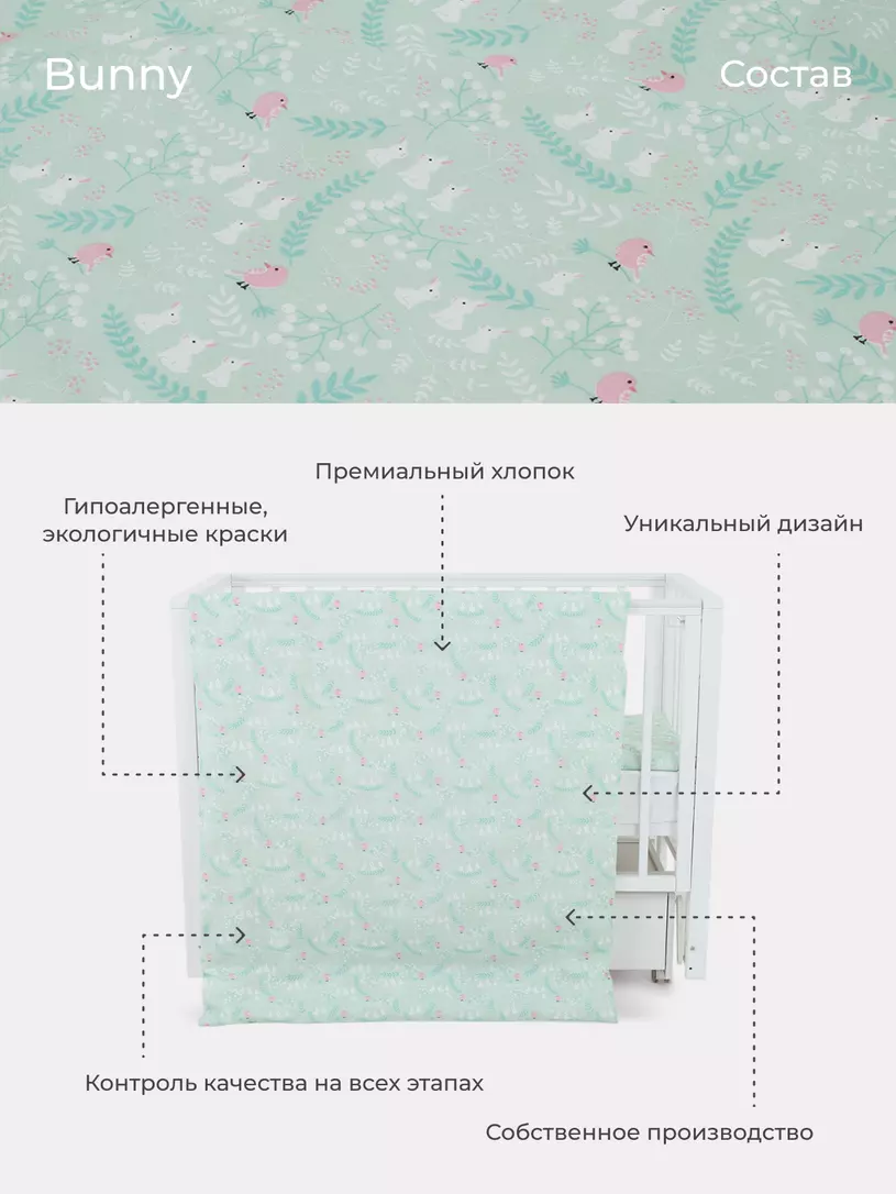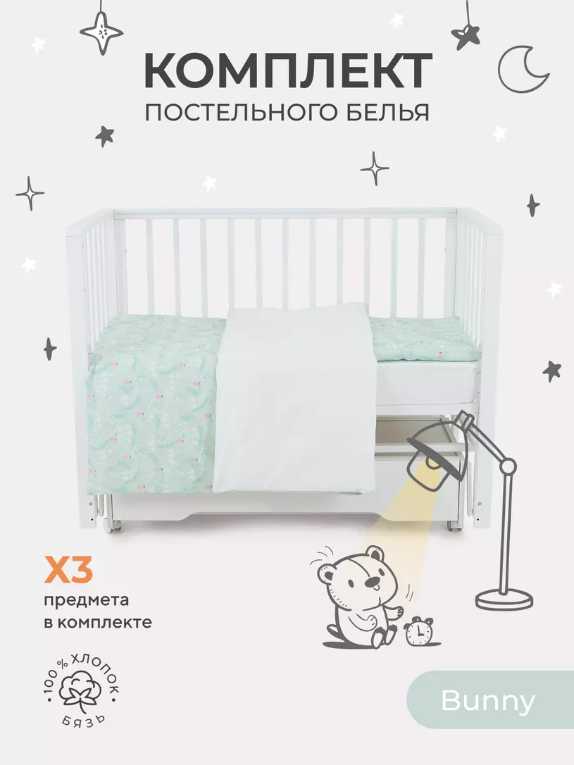 Засыпать с комфортом малышу поможет детское постельное белье RANT BANNY (3 ПРЕДМЕТА). Украшает этот нежный набор трогательный дизайнерский принт мильфлер.