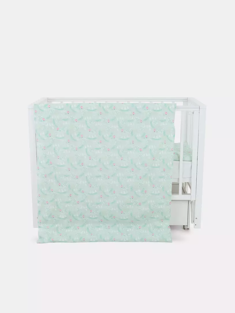 - лицевая сторона пододеяльника и наволочка украшены принтом мильфлер - крохотные обитатели сада в сочетании с нежными фрагментами растений