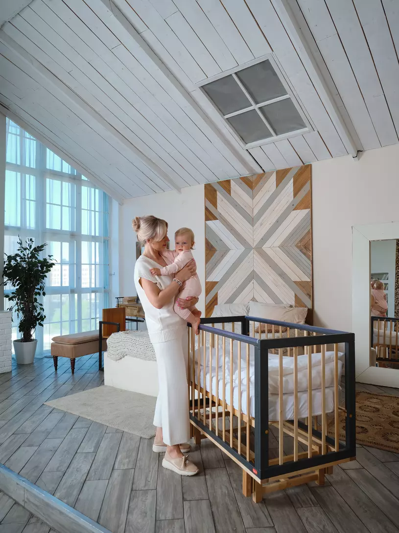 - лаконичный комплект хорошо вписывается в интерьер как детской комнаты, так и родительской спальни