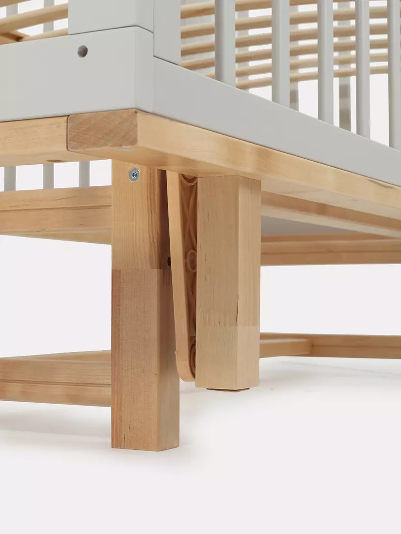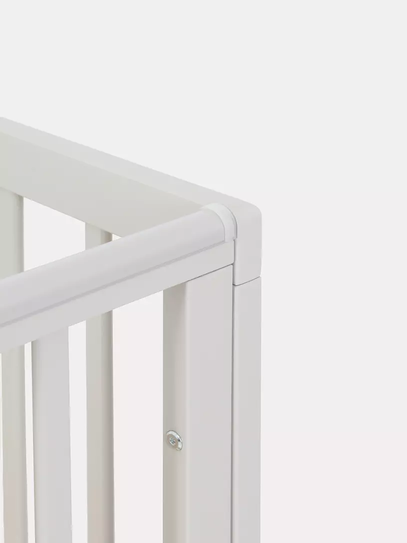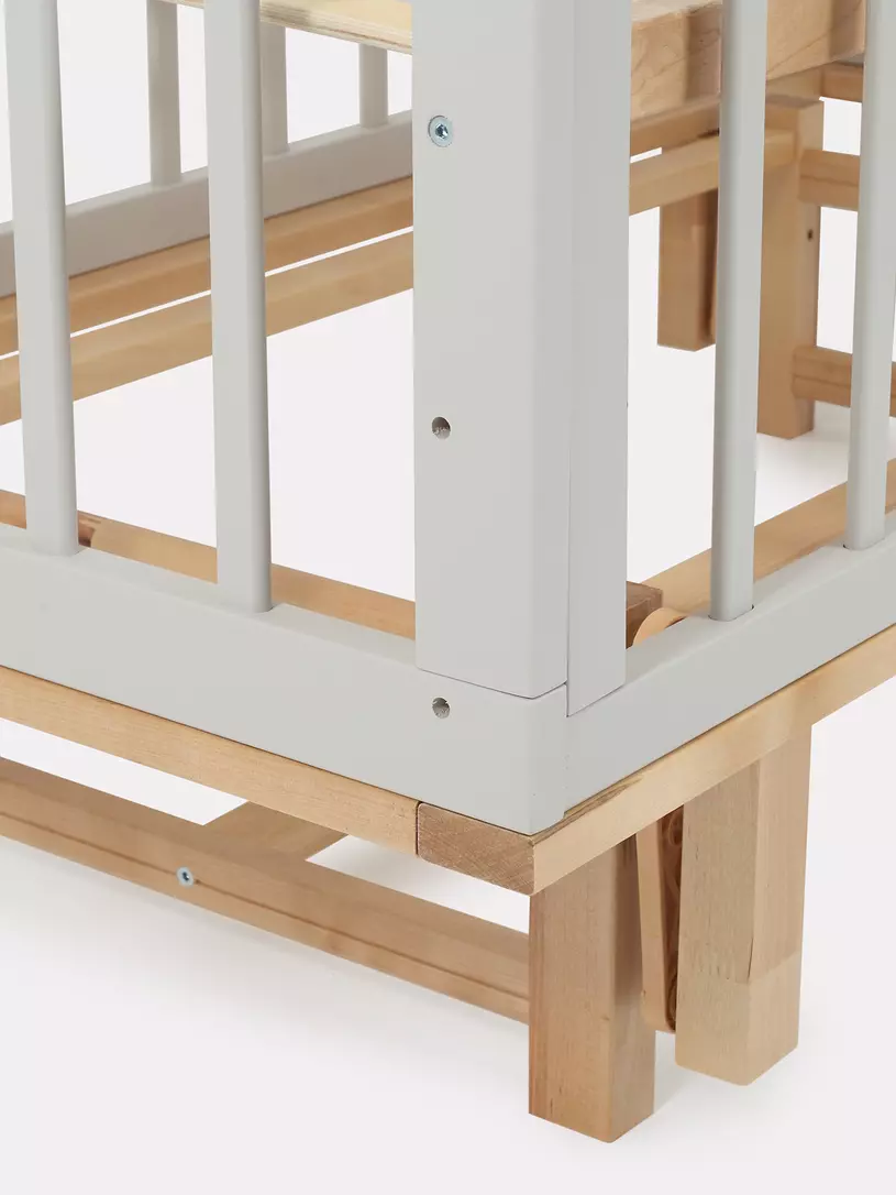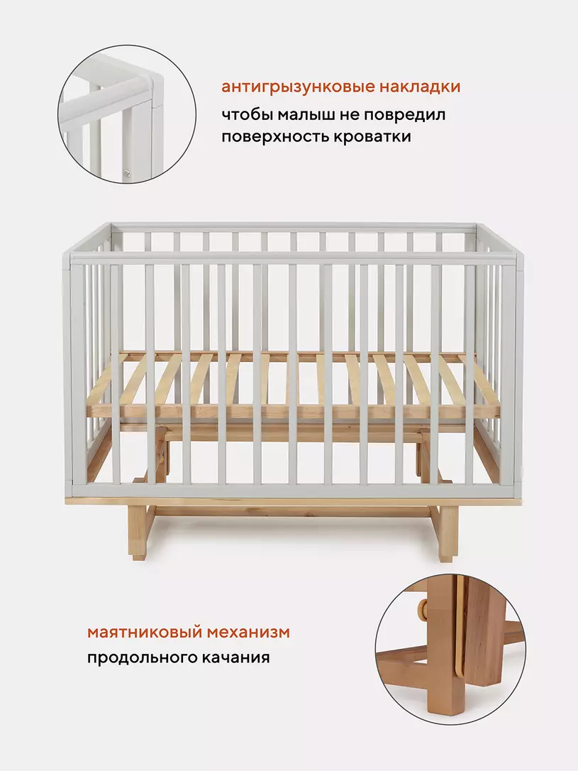 - боковые стенки дополнены антигрызунковыми силиконовыми накладками - малыш не повредит десна во время прорезывания первых зубов, да и кроватка останется в первозданном виде