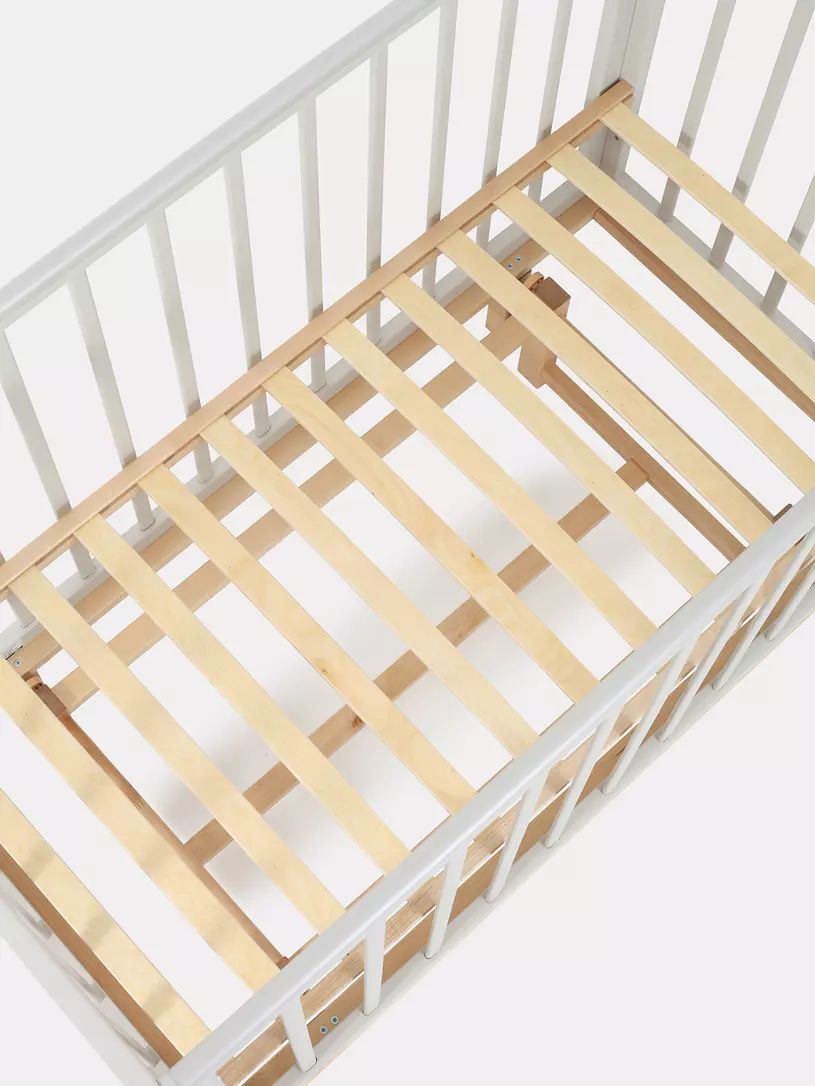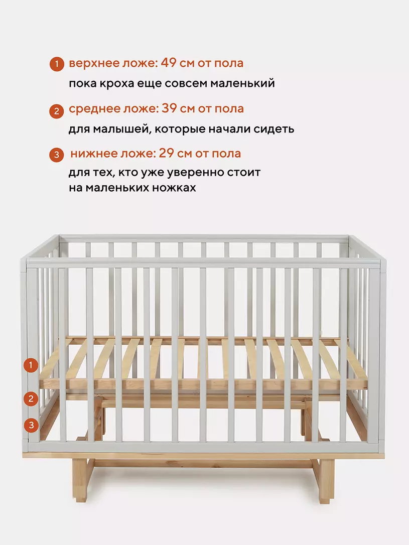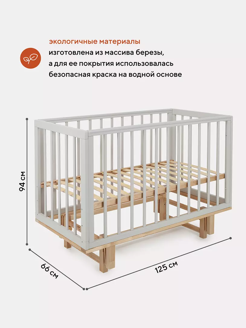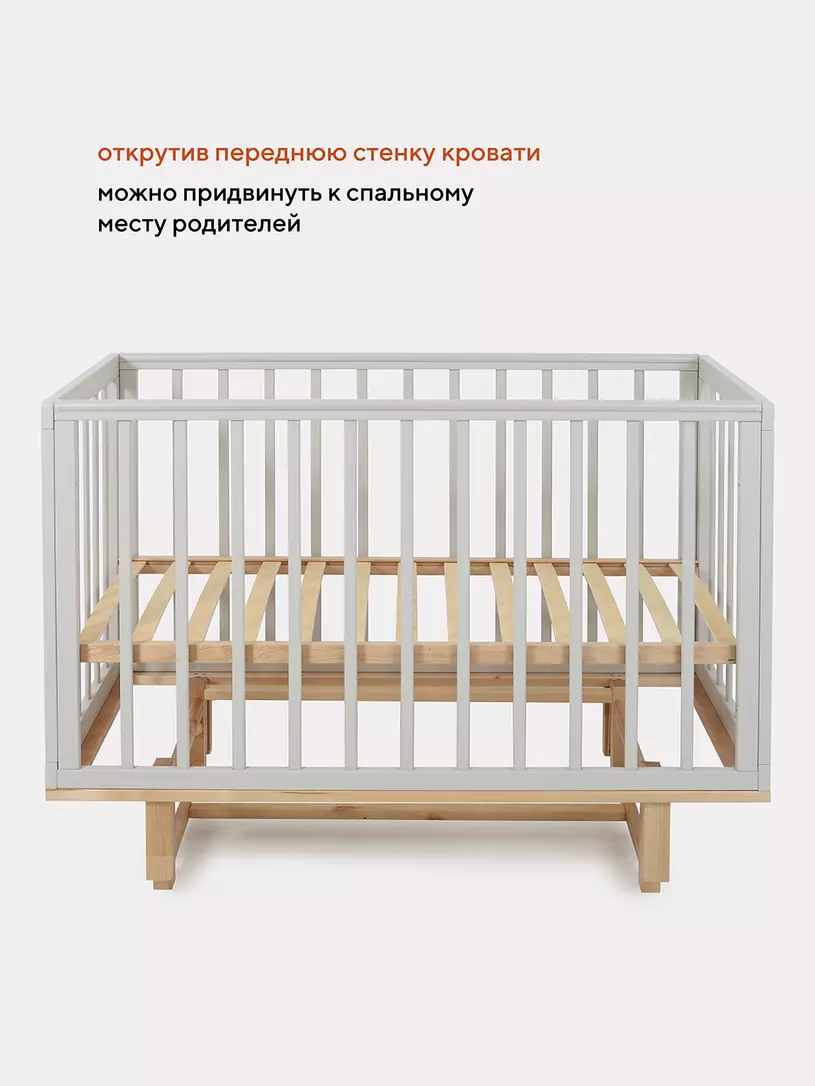 - боковые стенки дополнены антигрызунковыми силиконовыми накладками - малыш не повредит десна во время прорезывания первых зубов, да и кроватка останется в первозданном виде