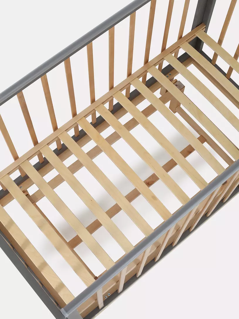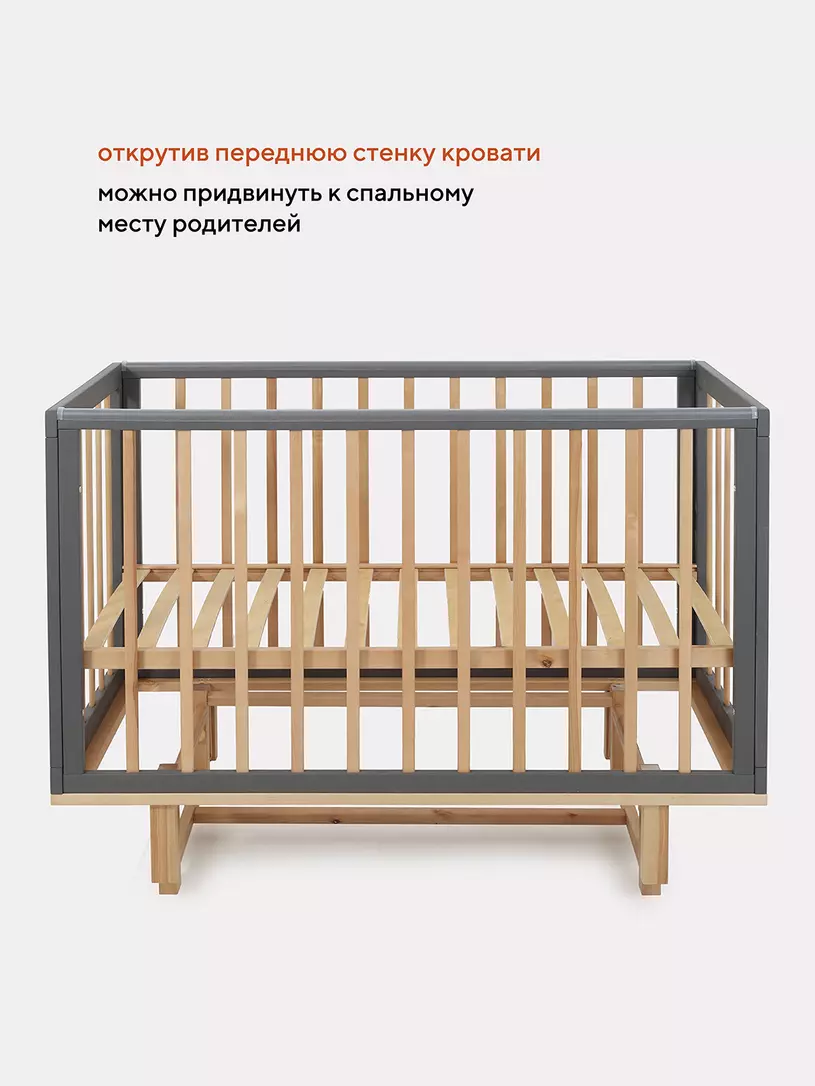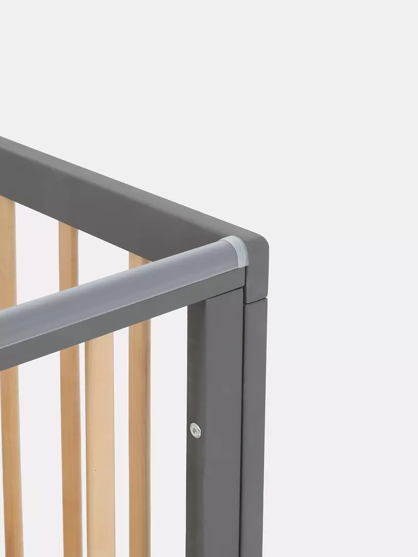 - боковые стенки дополнены антигрызунковыми силиконовыми накладками - малыш не повредит десна во время прорезывания первых зубов, да и кроватка останется в первозданном виде