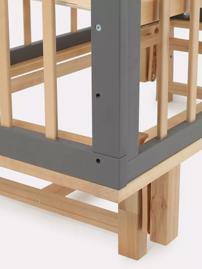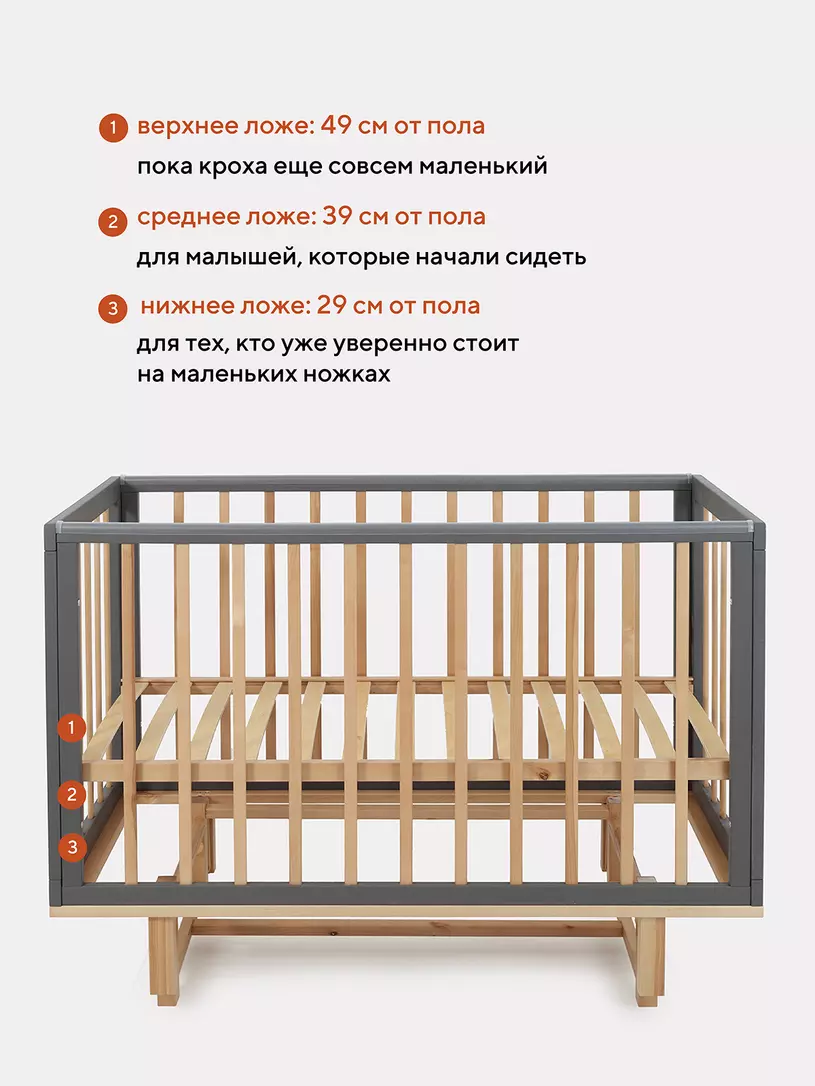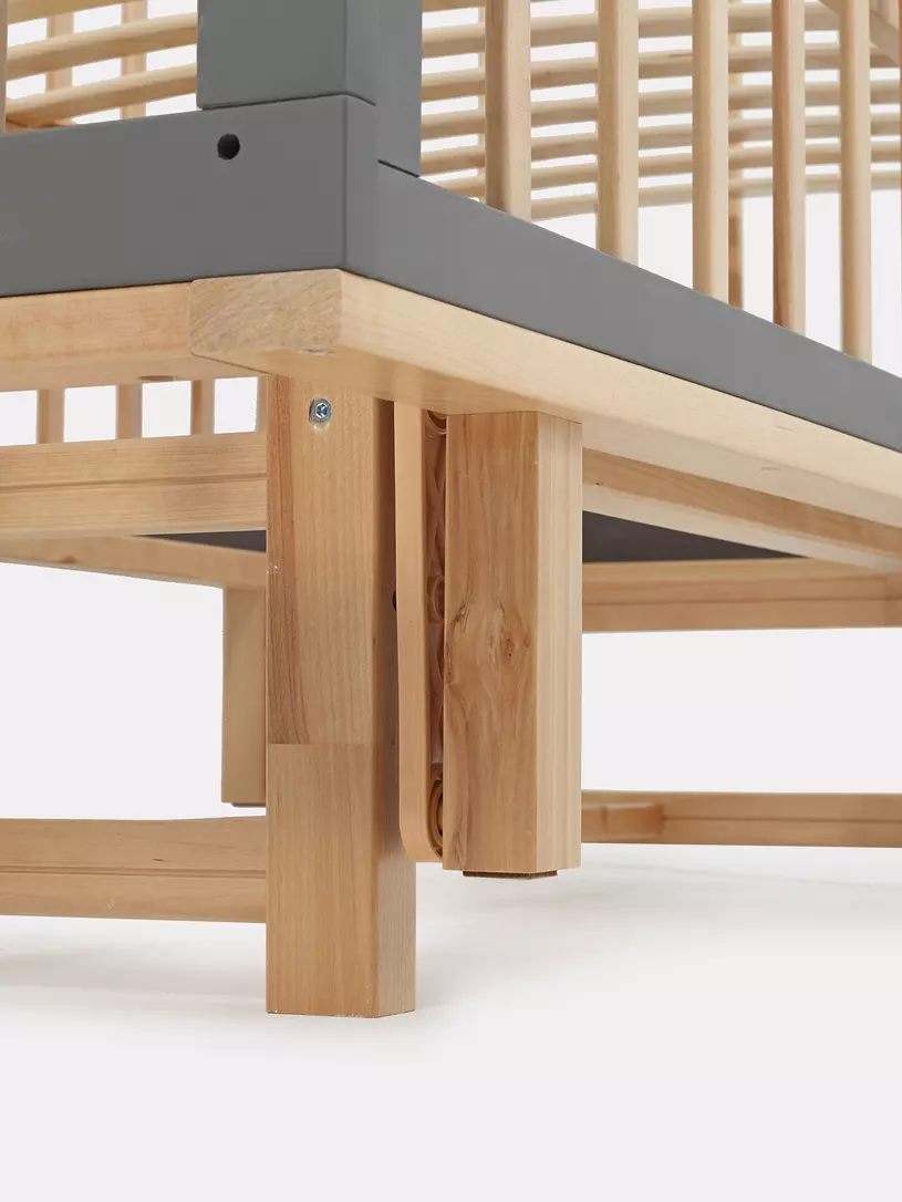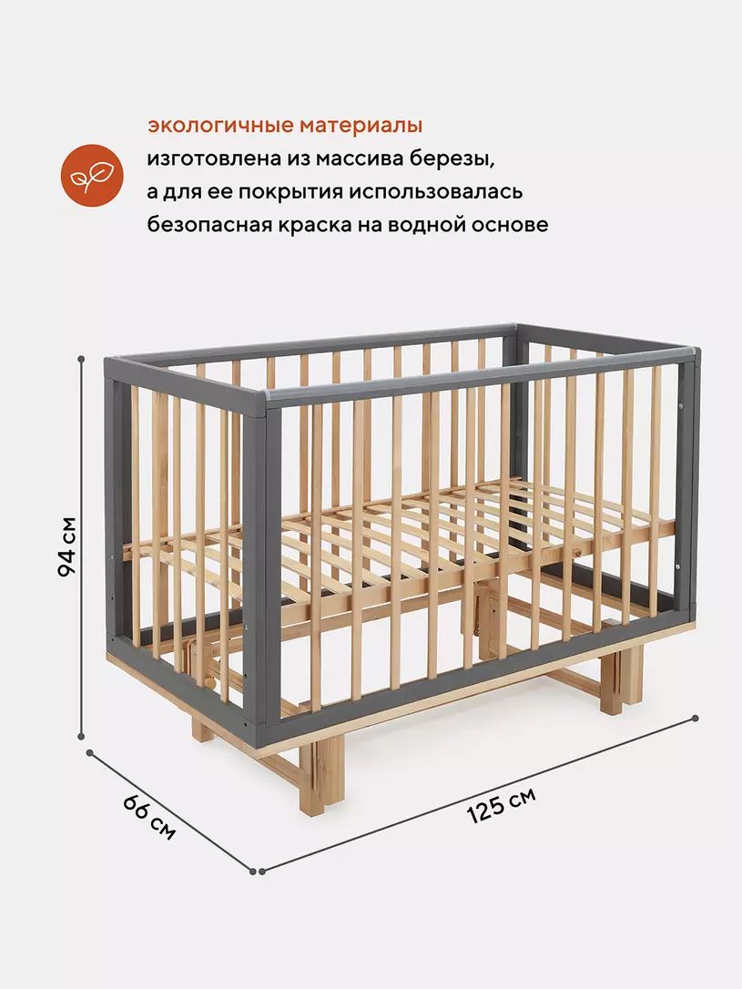 - боковые стенки дополнены антигрызунковыми силиконовыми накладками - малыш не повредит десна во время прорезывания первых зубов, да и кроватка останется в первозданном виде